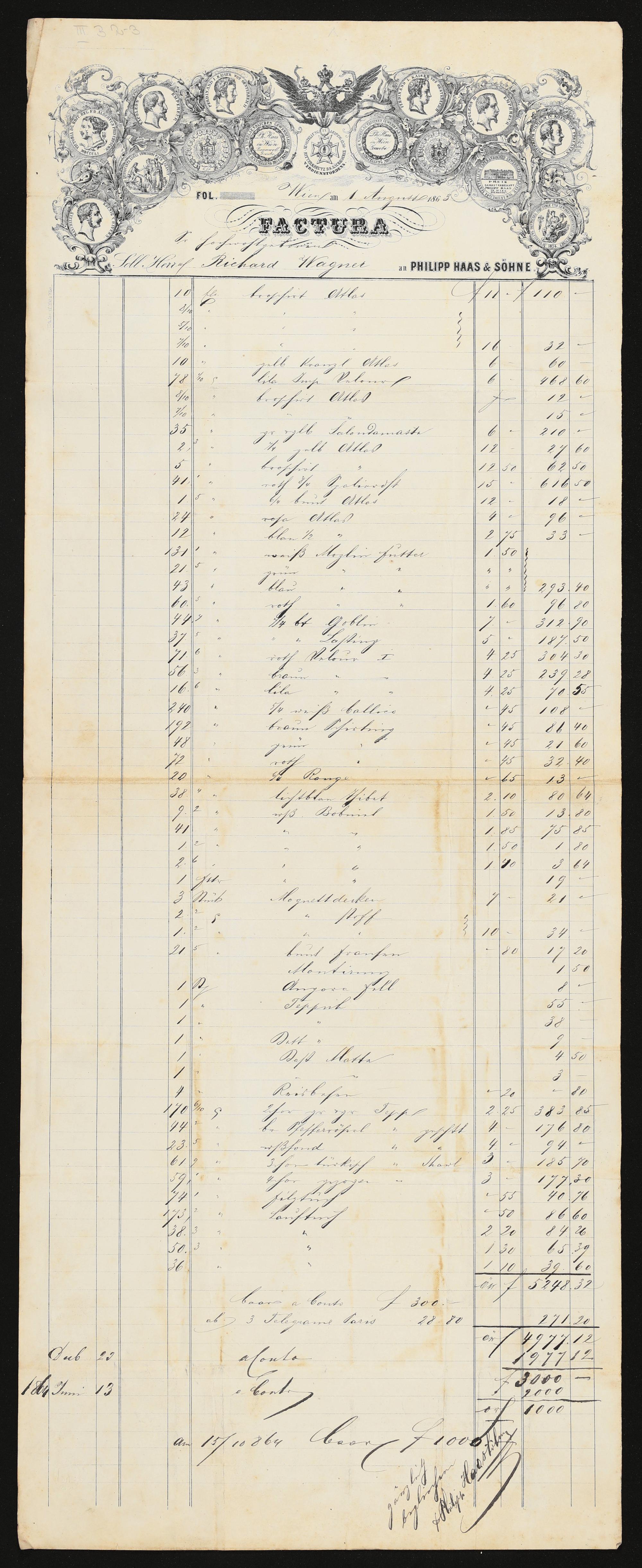 eigenhändiger Brief von Philipp Haas & Söhne an Richard Wagner