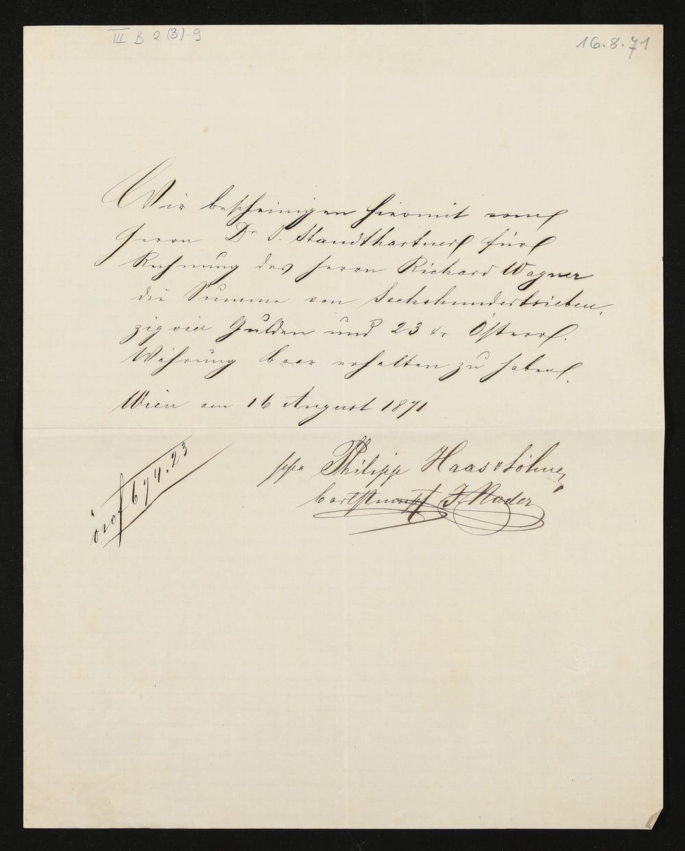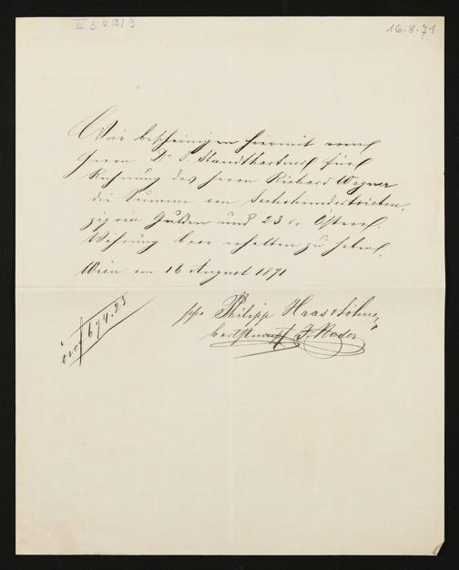 eigenhändiger Brief von Philipp Haas & Söhne an Richard Wagner