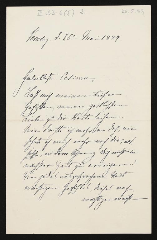 eigenhändiger Brief von Marie von Hatzfeld an Cosima Wagner
