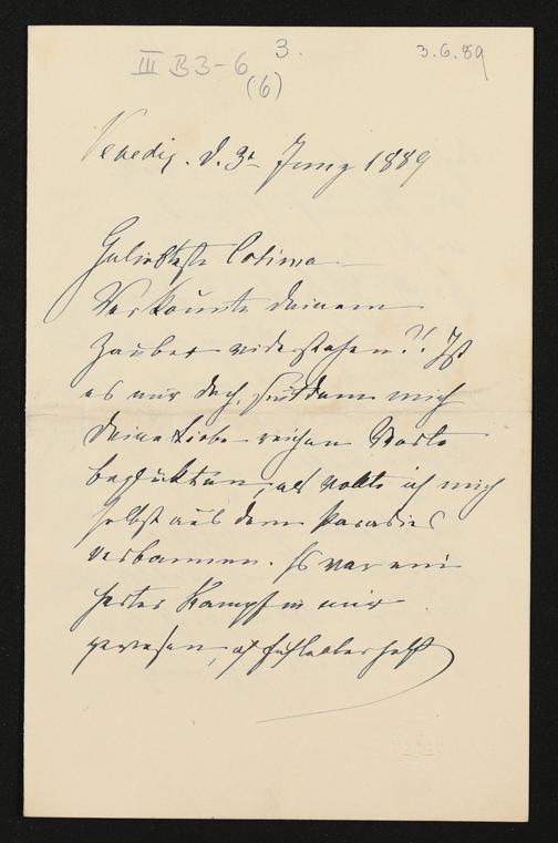 eigenhändiger Brief von Marie von Hatzfeld an Cosima Wagner