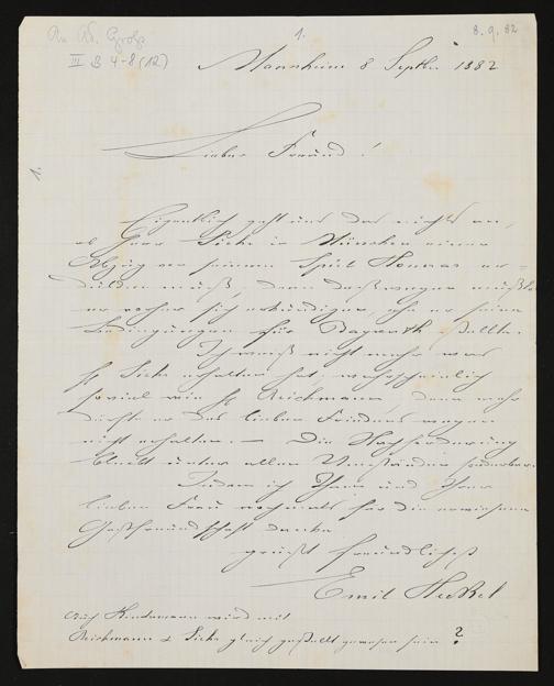 eigenhändiger Brief von Emil Heckel mutmaßlich an Adolf von Gross