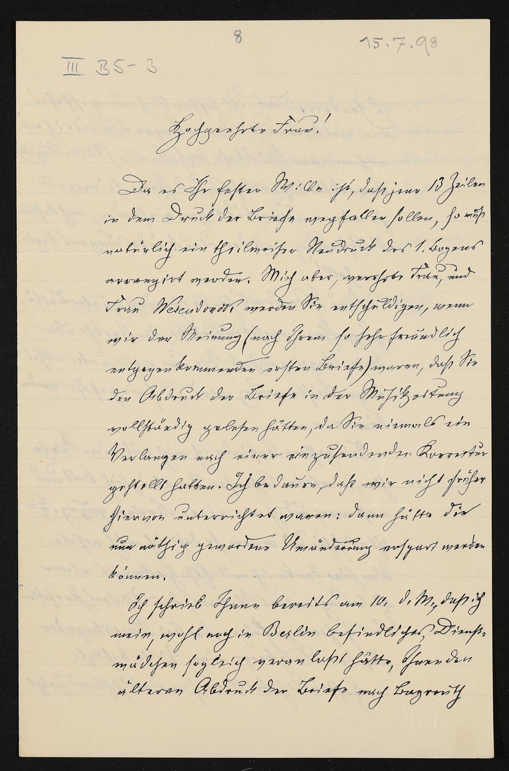 eigenhändiger Brief von Albert Heintz an Cosima Wagner