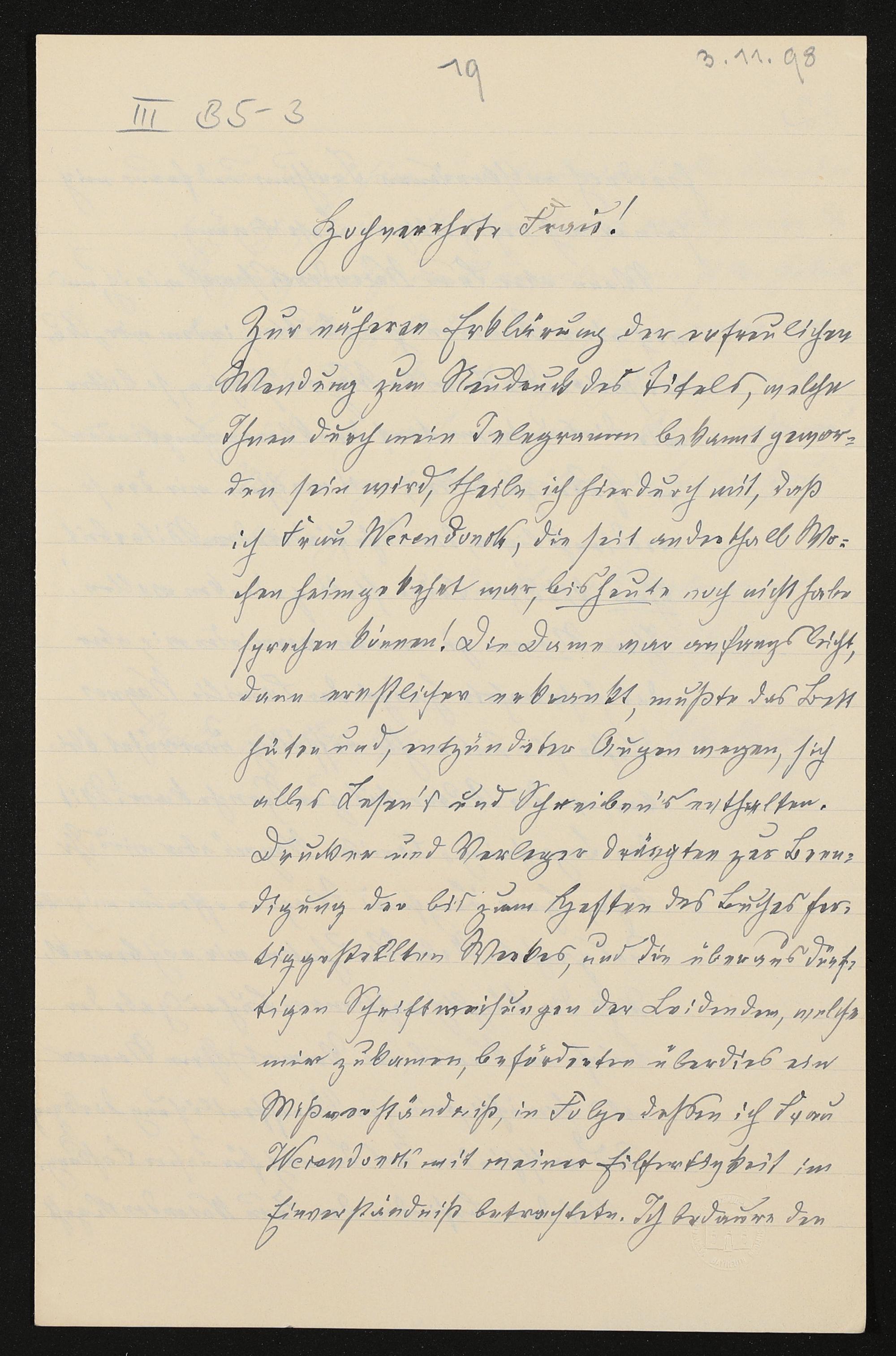 eigenhändiger Brief von Albert Heintz an Cosima Wagner