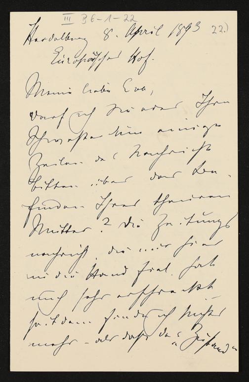 eigenhändiger Brief von Anna von Helmholtz an Eva Wagner