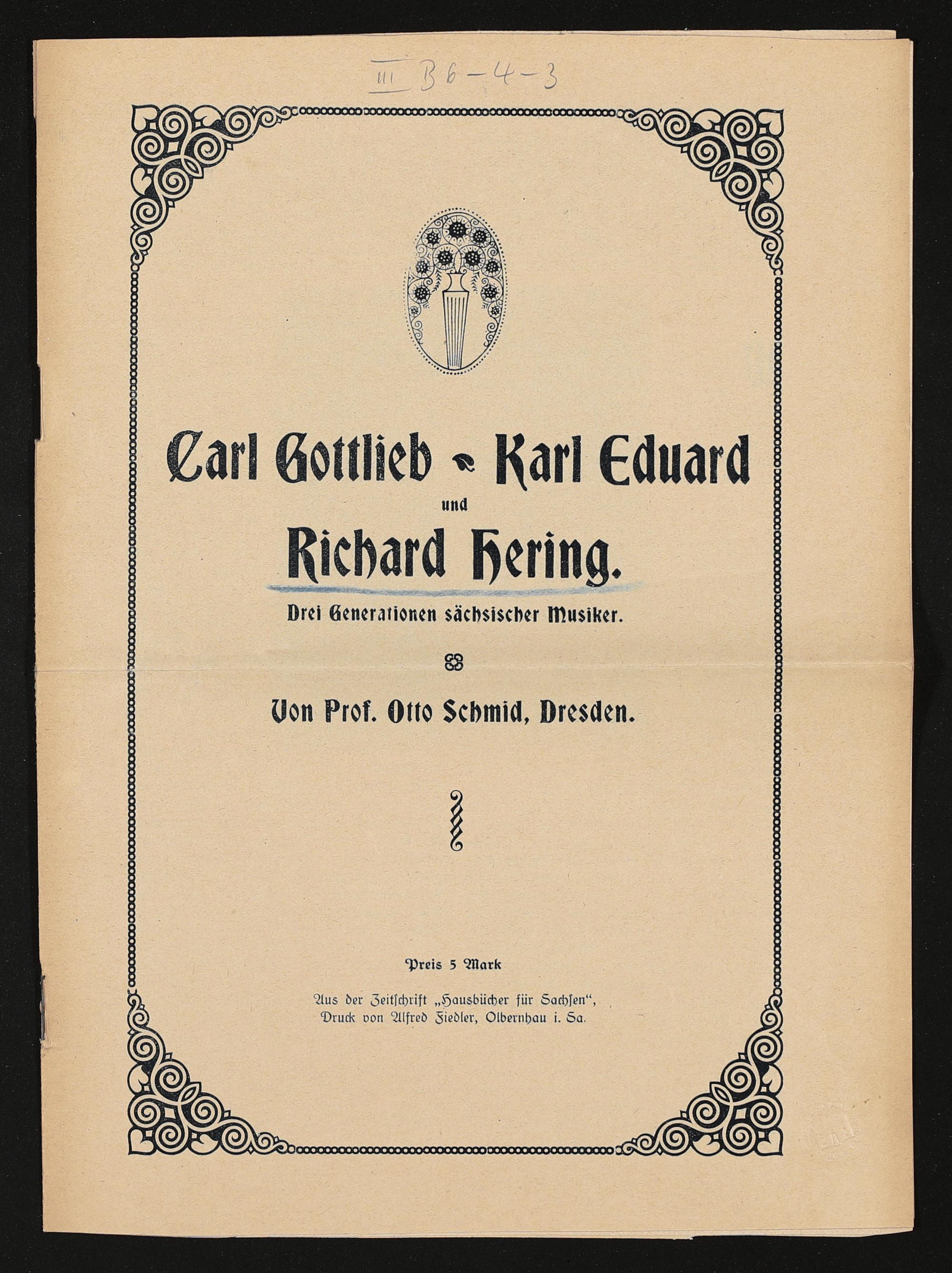 Sonderdruck "Carl Gottlieb, Karl Eduard und Richard Hering - Drei Generationen sächsischer Musiker" von Otto Schmid