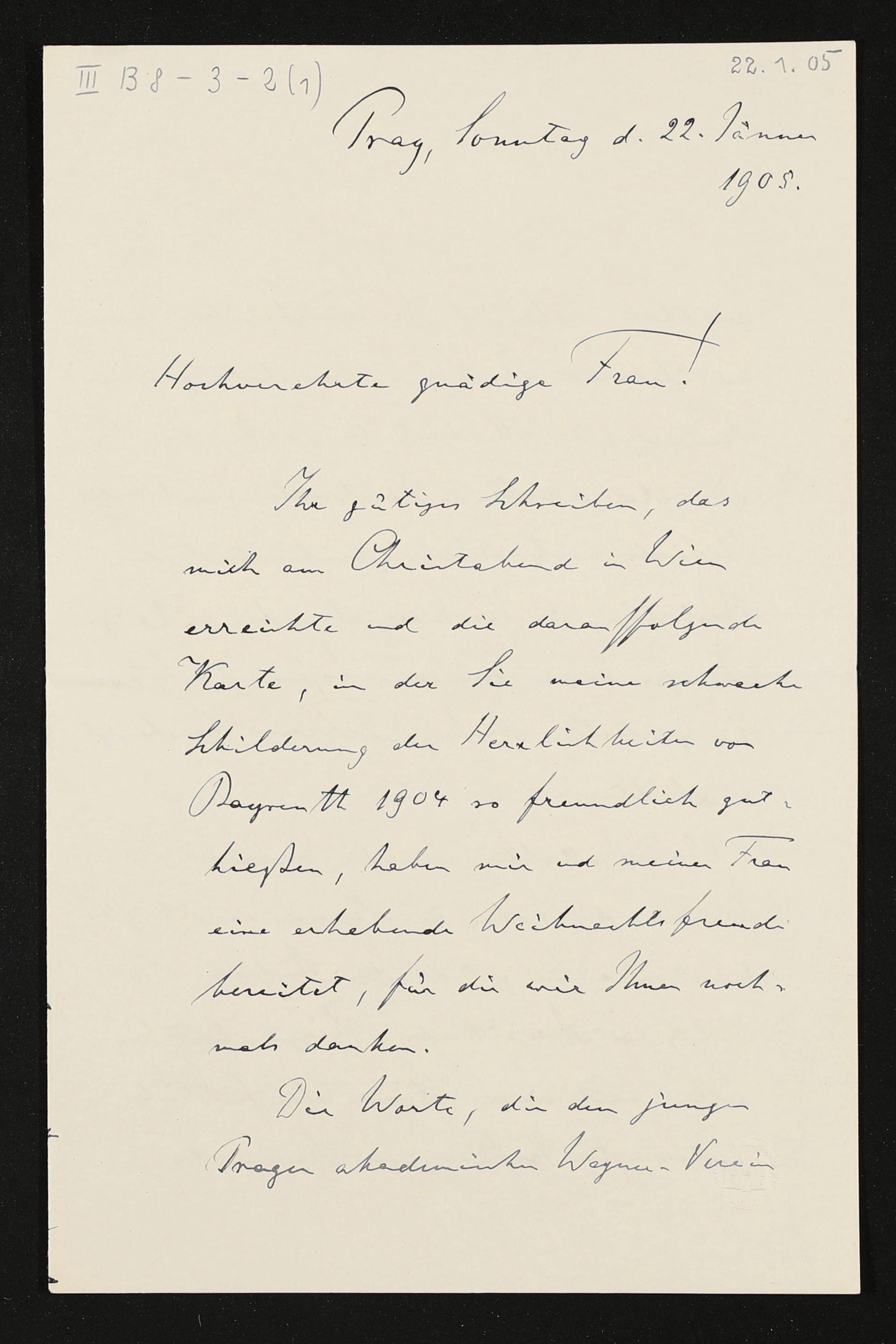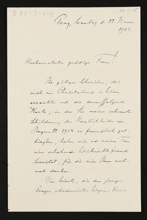 eigenhändiger Brief von Alois Höfler an Cosima Wagner