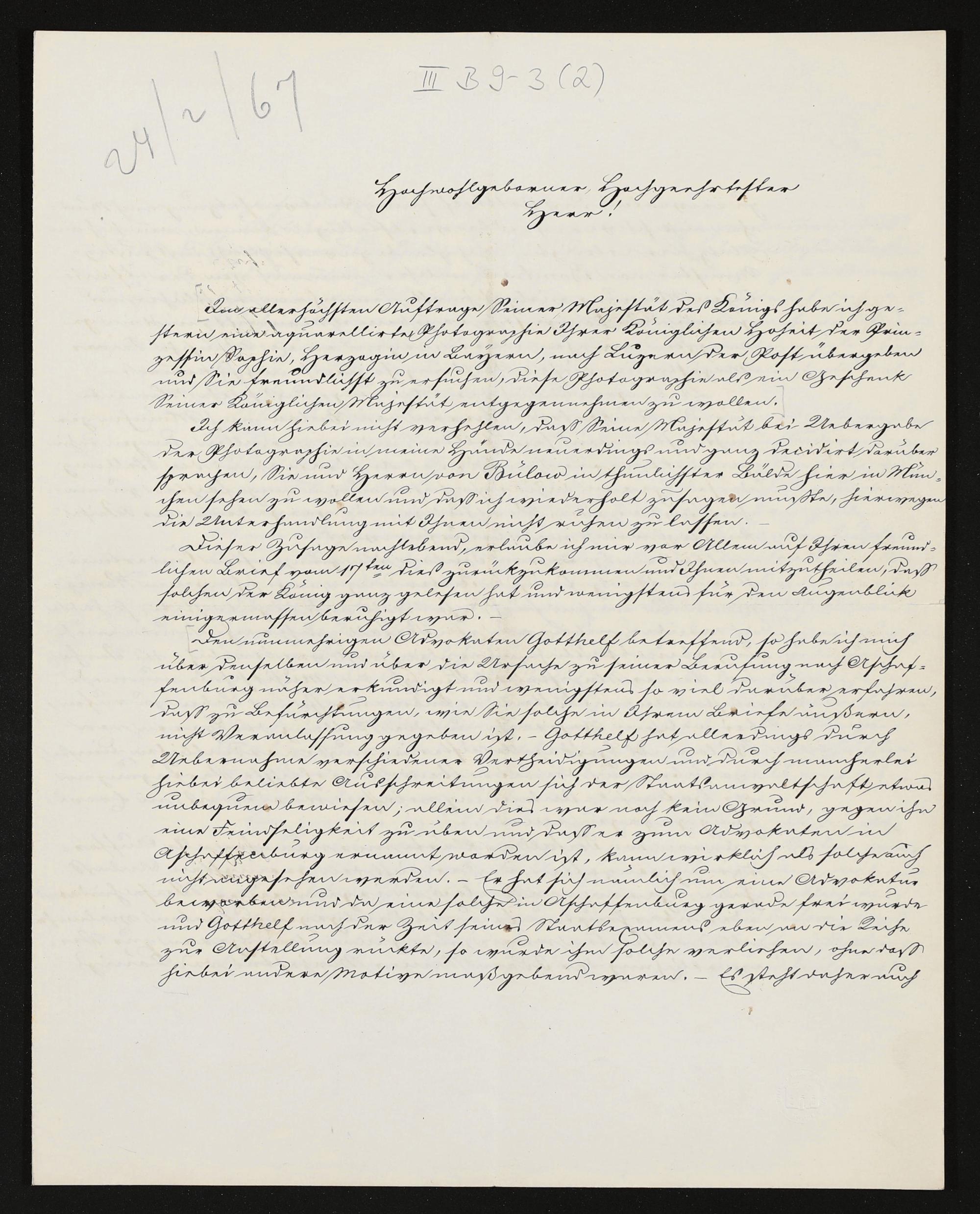 eigenhändiger Brief von Lorenz von Düfflipp (Königlich Bayerisches Hofsekretariat) an Richard Wagner