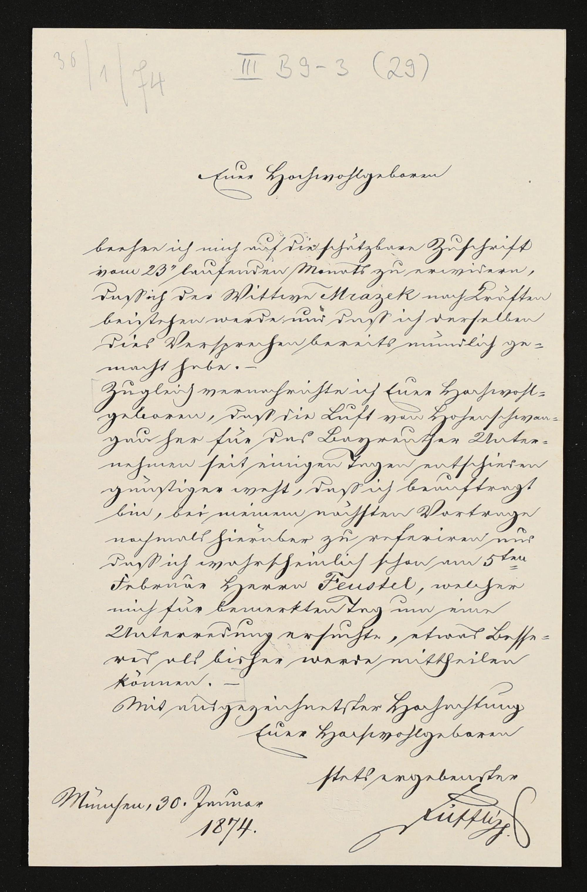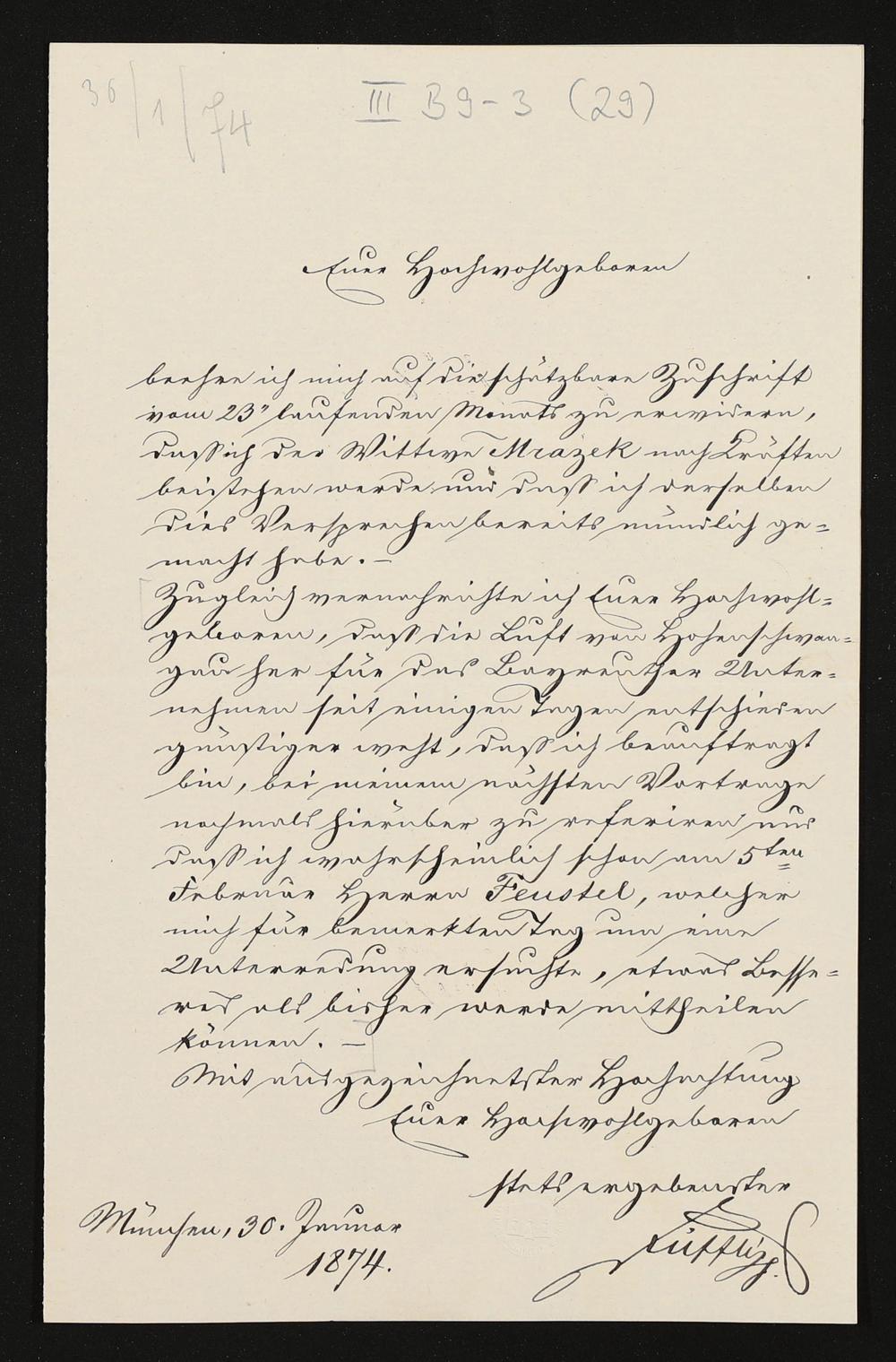 eigenhändiger Brief von Lorenz von Düfflipp (Königlich Bayerisches Hofsekretariat) an Richard Wagner