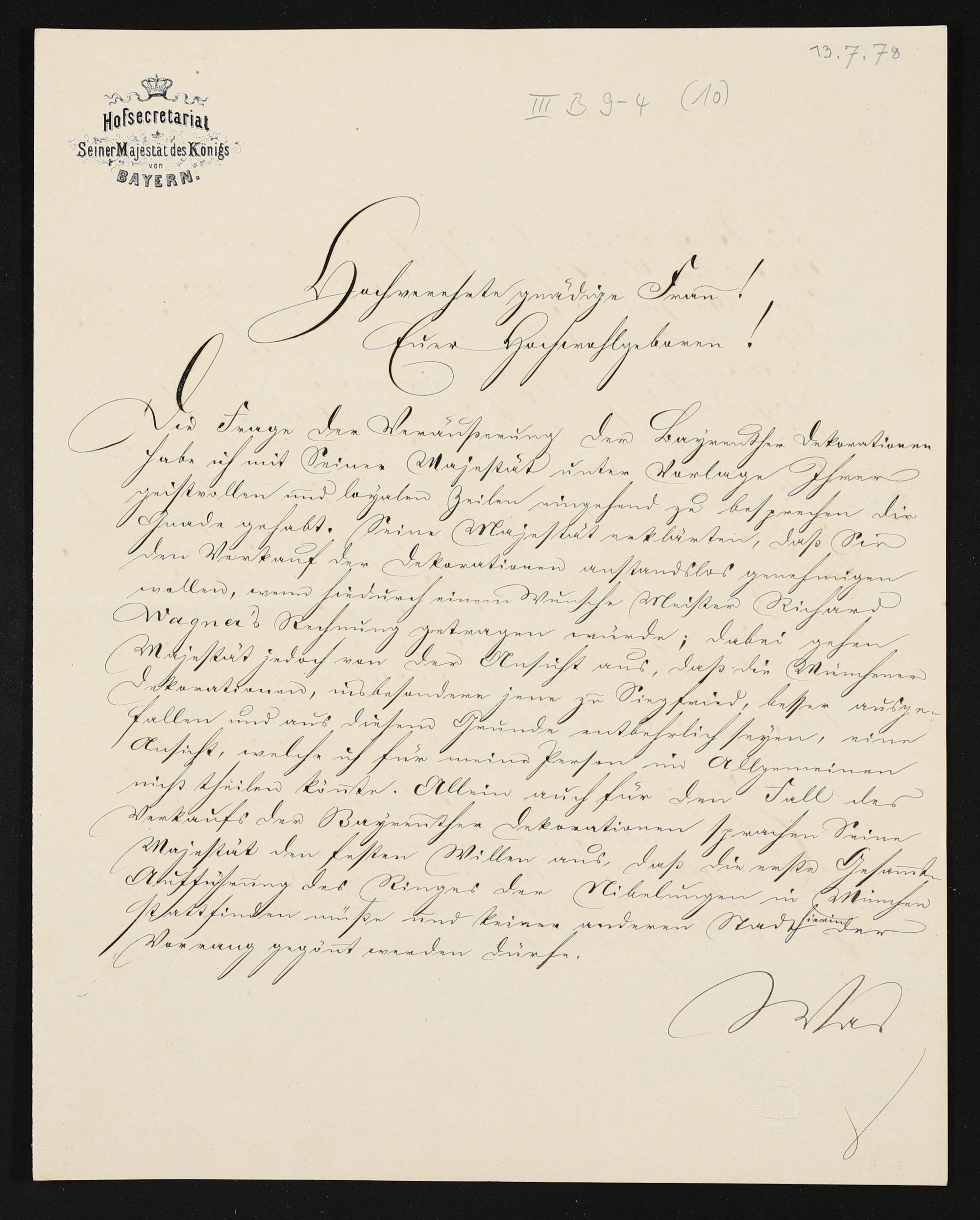 eigenhändiger Brief von Ludwig von Bürkel (Königlich Bayerisches Hofsekretariat) an Cosima Wagner