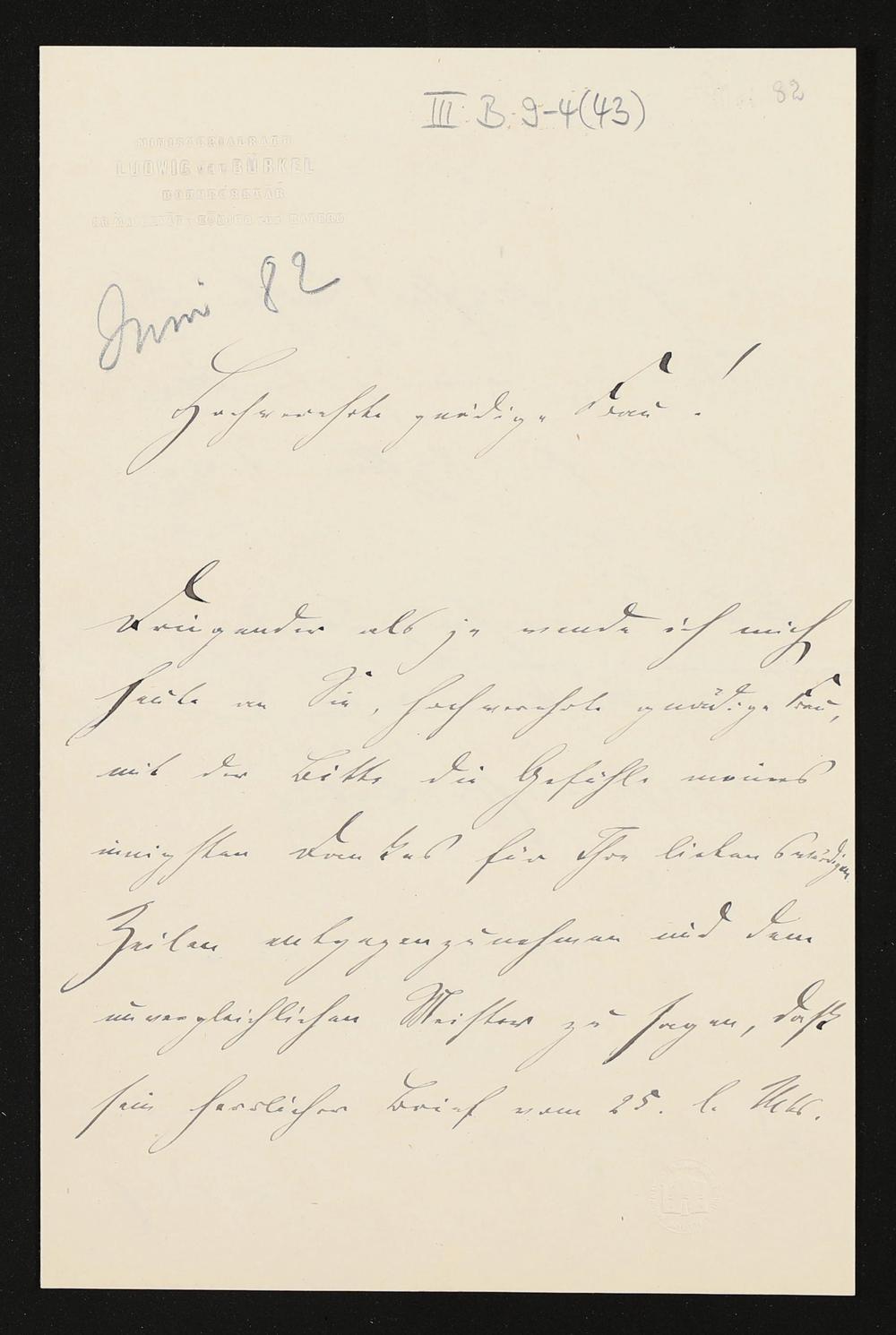 eigenhändiger Brief von Ludwig von Bürkel (Königlich Bayerisches Hofsekretariat) an Cosima Wagner
