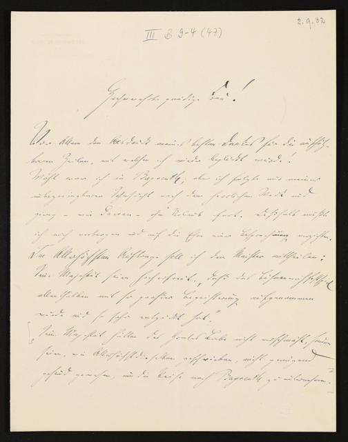 eigenhändiger Brief von Ludwig von Bürkel (Königlich Bayerisches Hofsekretariat) an Cosima Wagner