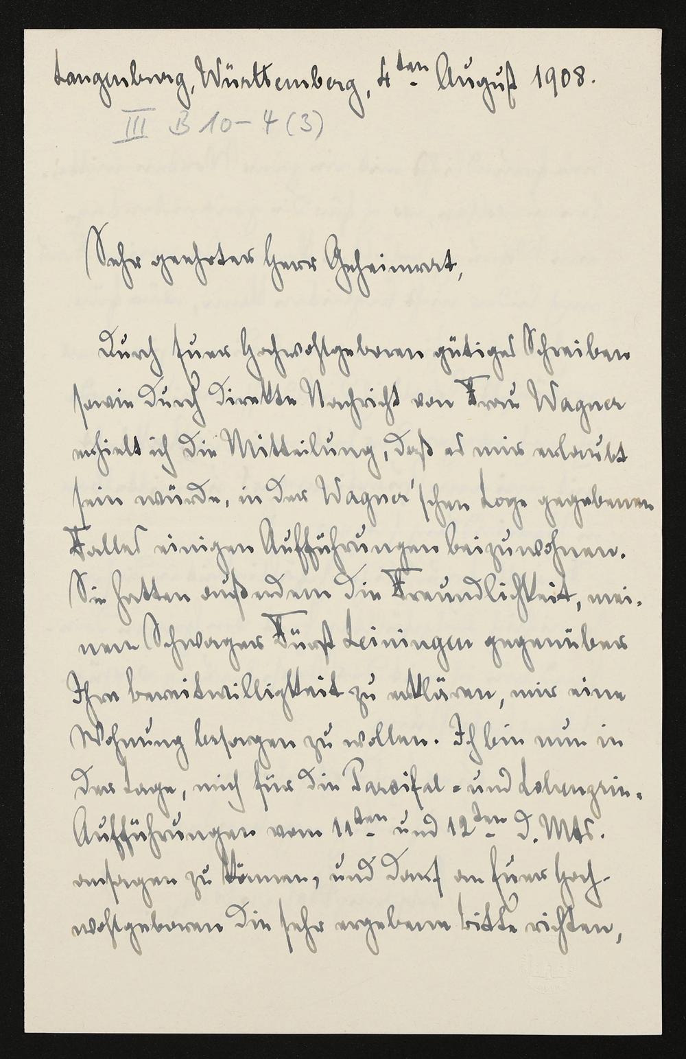 eigenhändiger Brief von Ernst zu Hohenlohe-Langenburg an Adolf von Gross