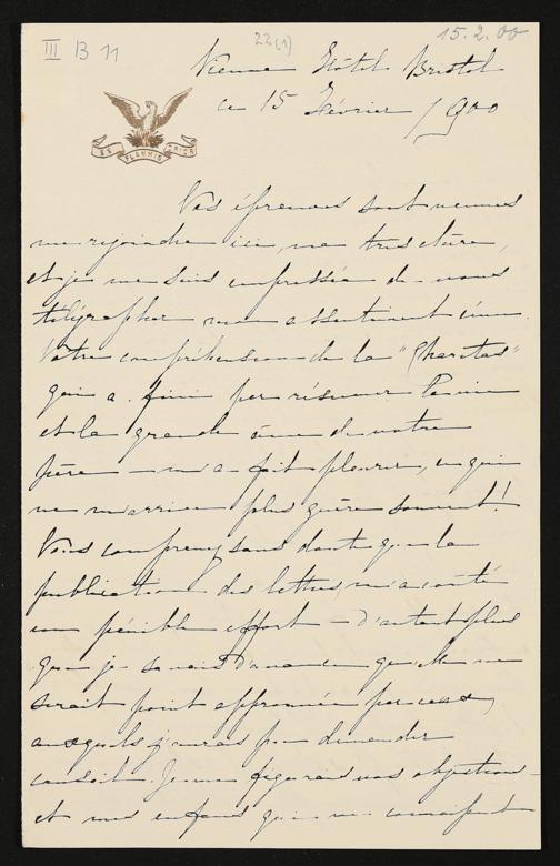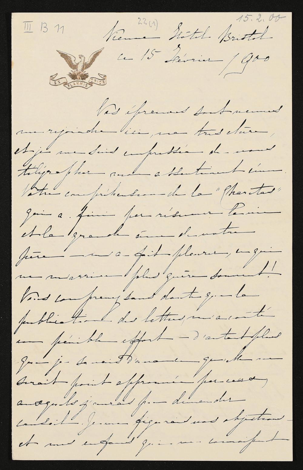 eigenhändiger Brief von Marie zu Hohenlohe-Schillingsfürst an Cosima Wagner