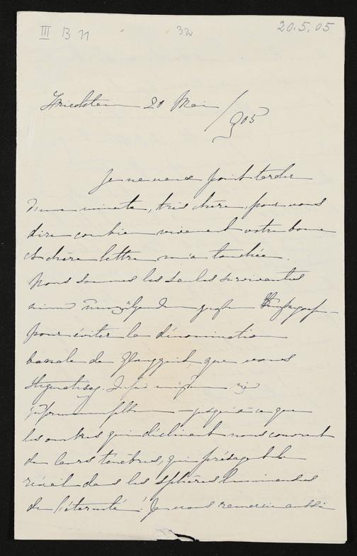 eigenhändiger Brief von Marie zu Hohenlohe-Schillingsfürst an Cosima Wagner