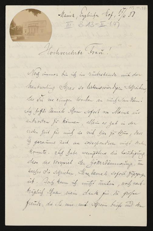 eigenhändiger Brief von Engelbert Humperdinck an Cosima Wagner