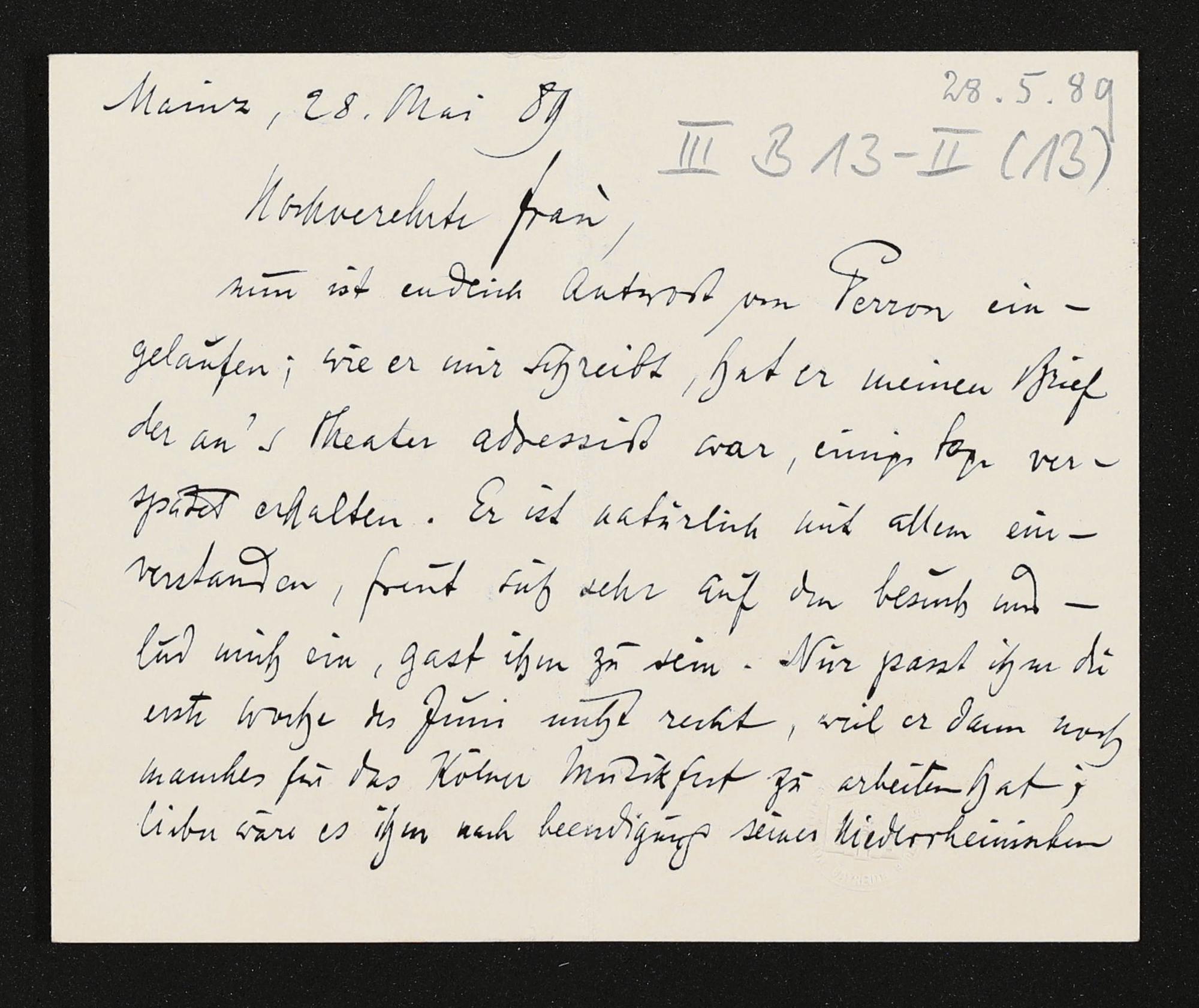 eigenhändige Briefkarte von Engelbert Humperdinck an Cosima Wagner