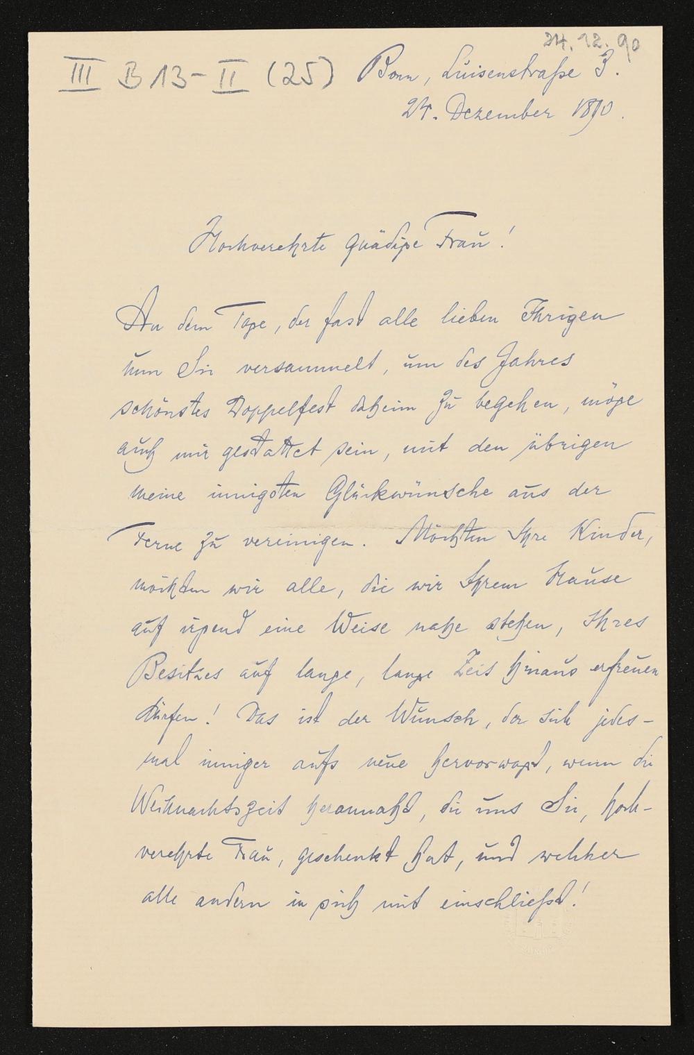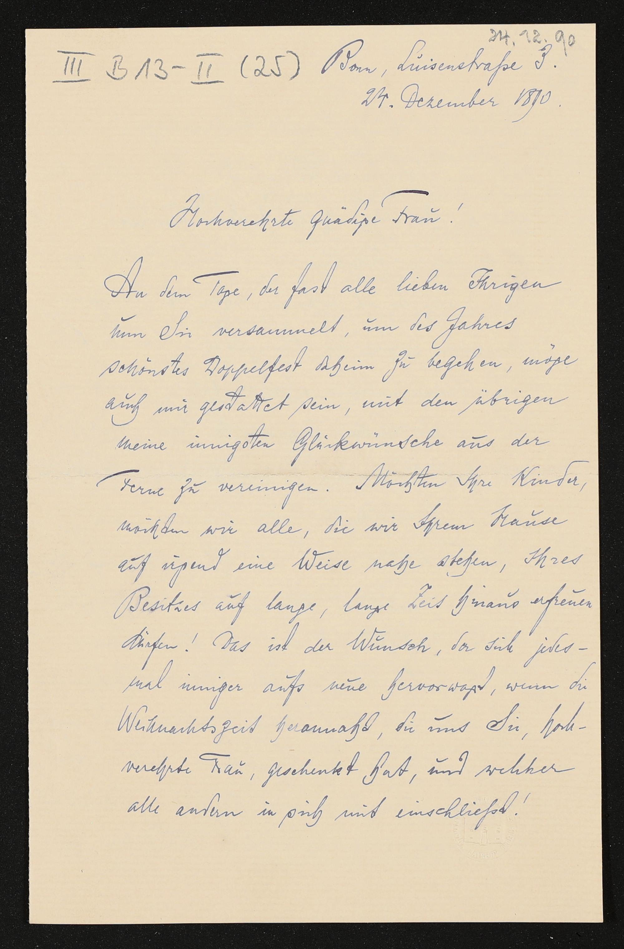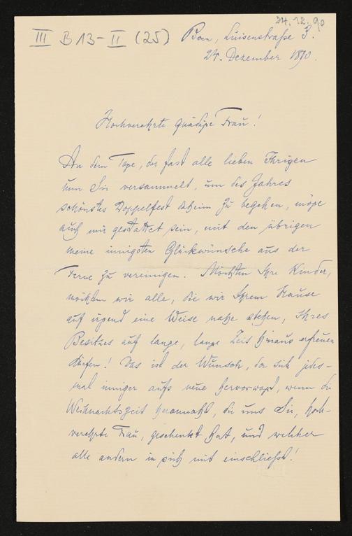 eigenhändiger Brief von Engelbert Humperdinck an Cosima Wagner