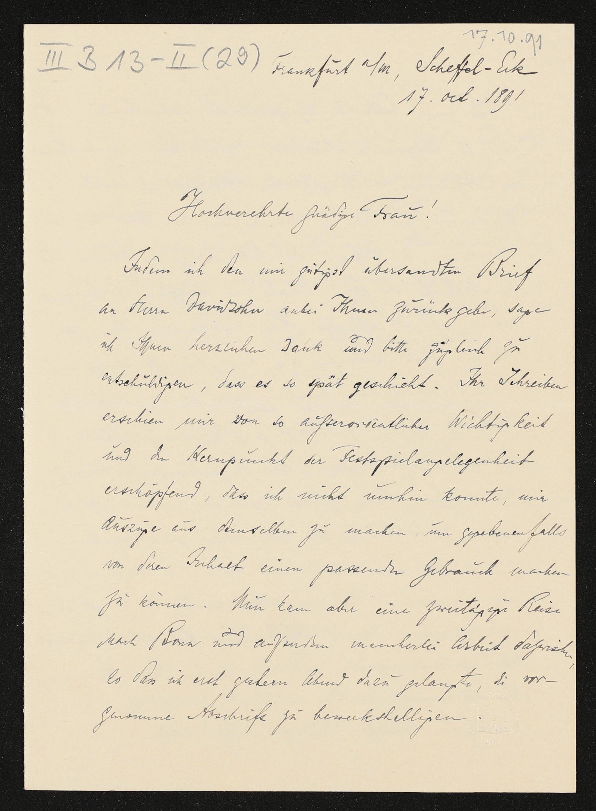eigenhändiger Brief von Engelbert Humperdinck an Cosima Wagner