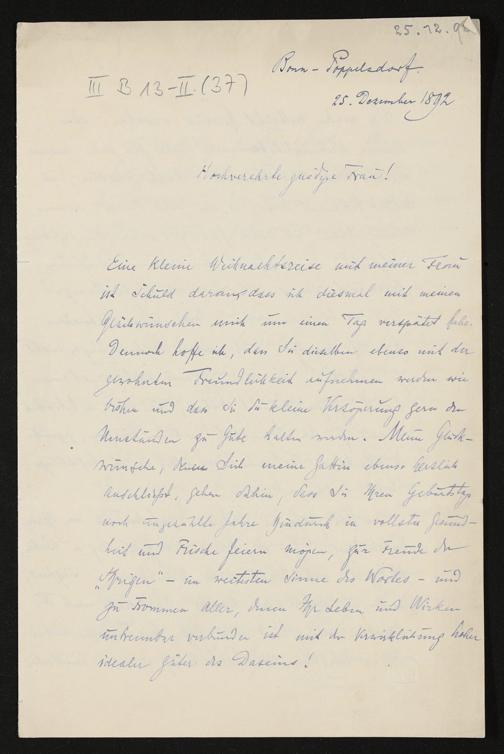 eigenhändiger Brief von Engelbert Humperdinck an Cosima Wagner