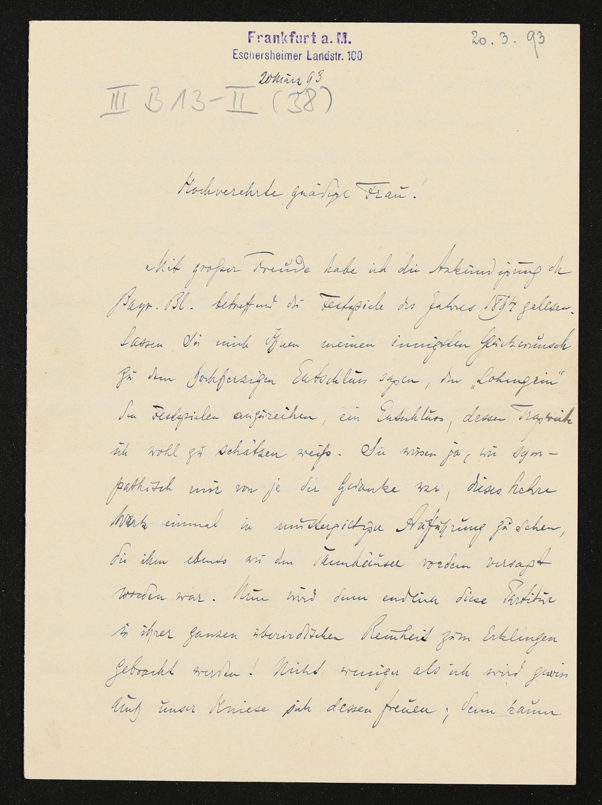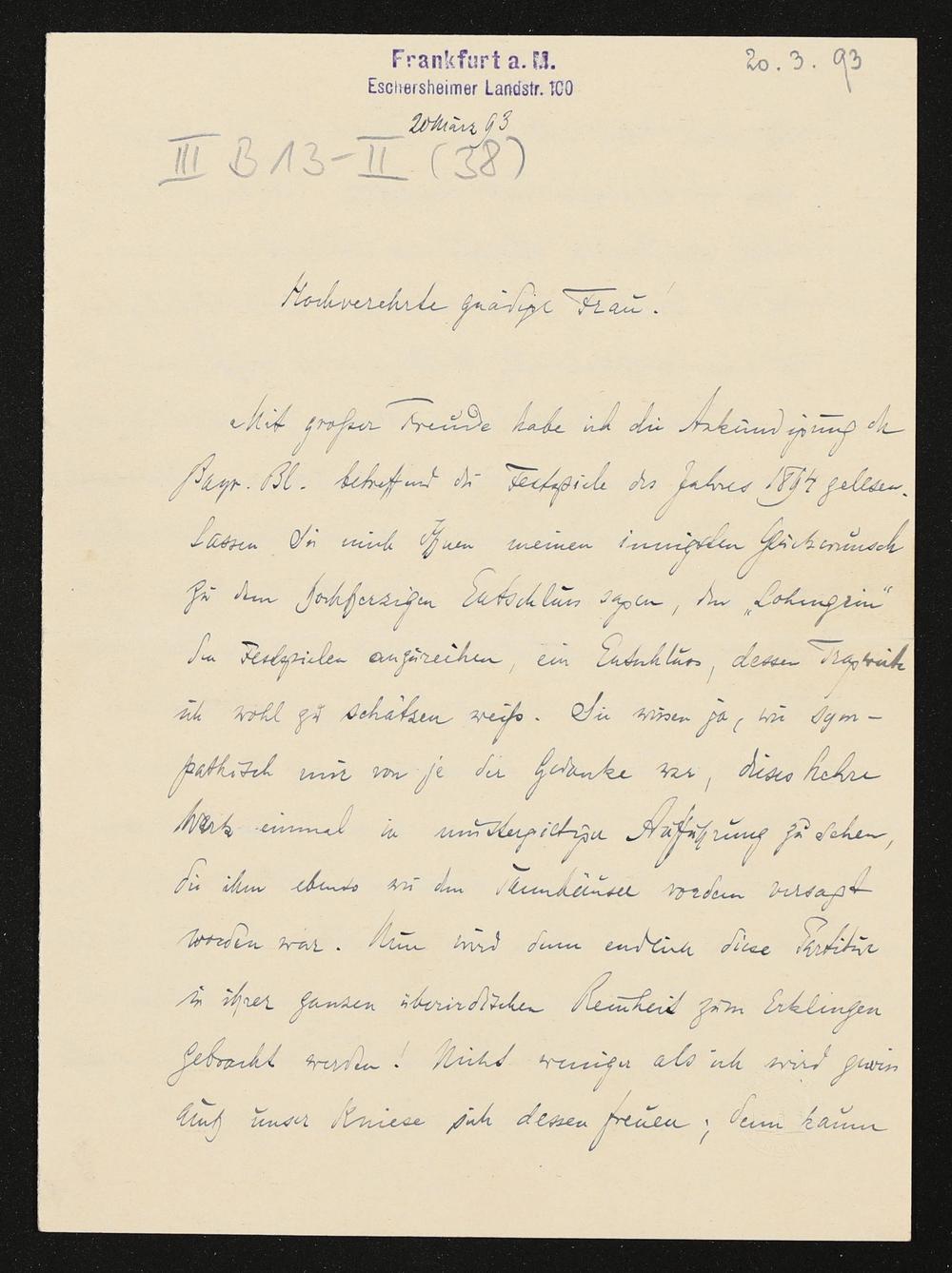 eigenhändiger Brief von Engelbert Humperdinck an Cosima Wagner