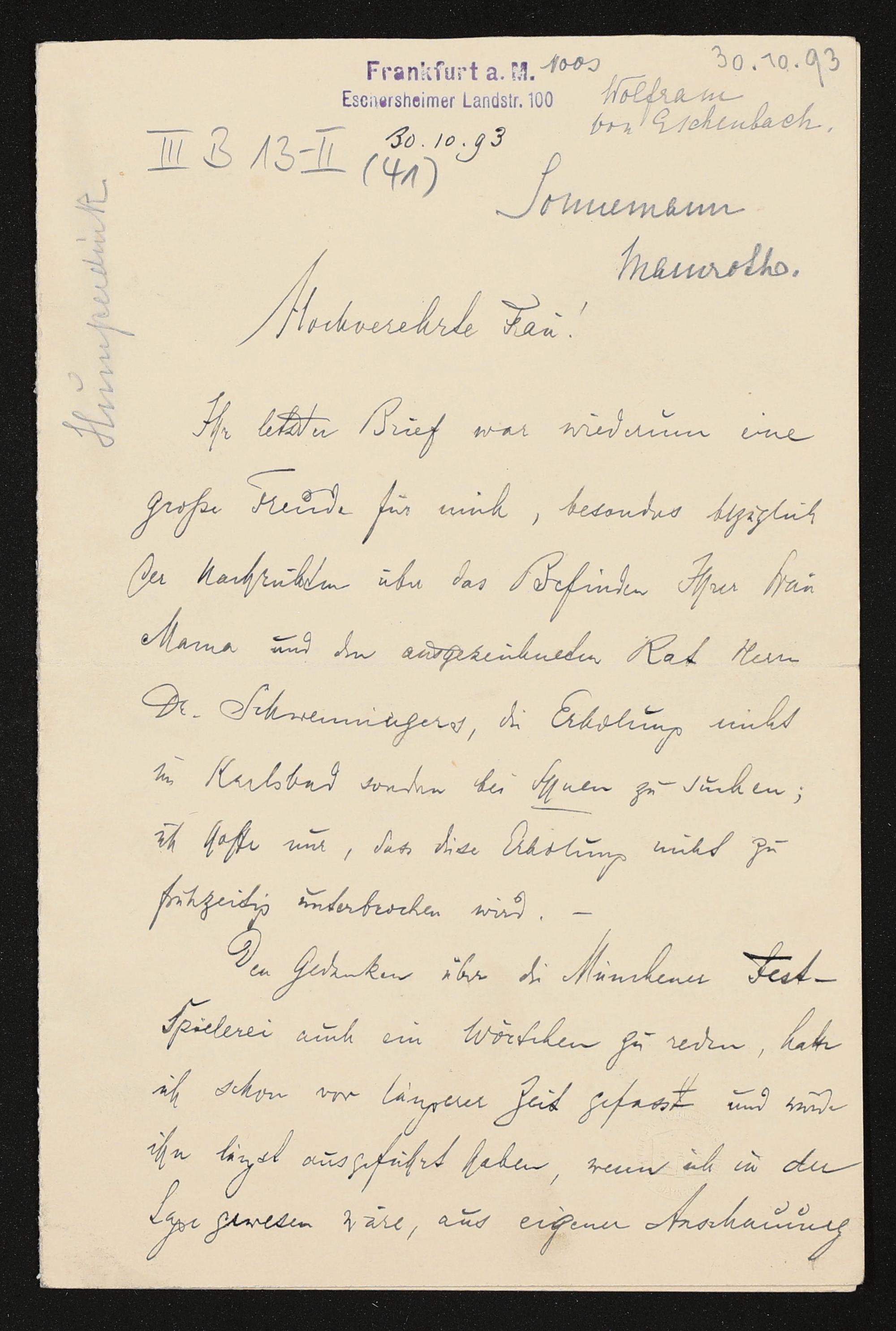 eigenhändiger Brief von Engelbert Humperdinck an Cosima Wagner