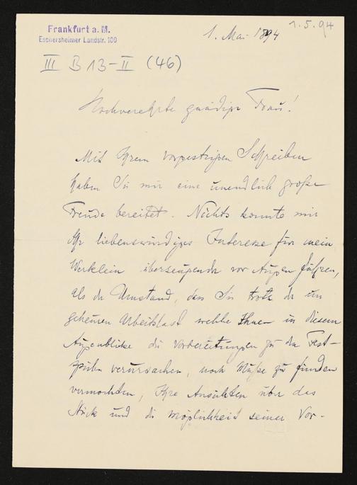 eigenhändiger Brief von Engelbert Humperdinck an Cosima Wagner