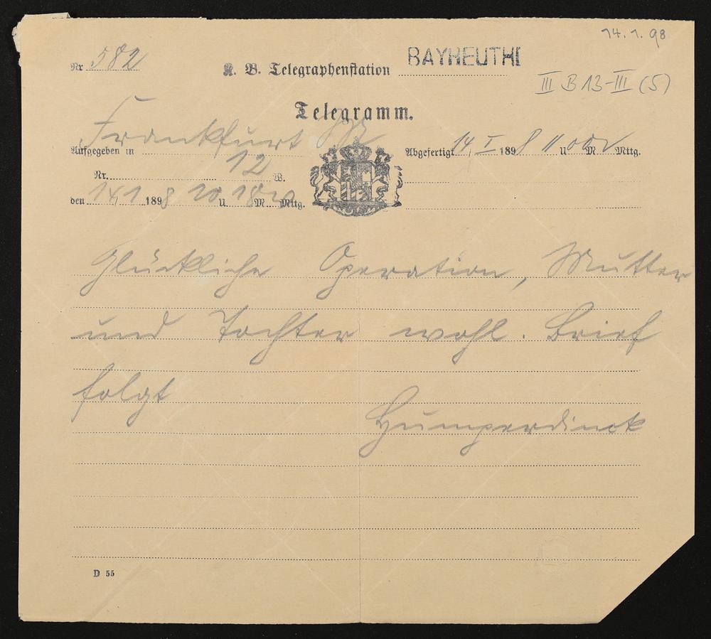 Telegramm von Engelbert Humperdinck an Cosima Wagner