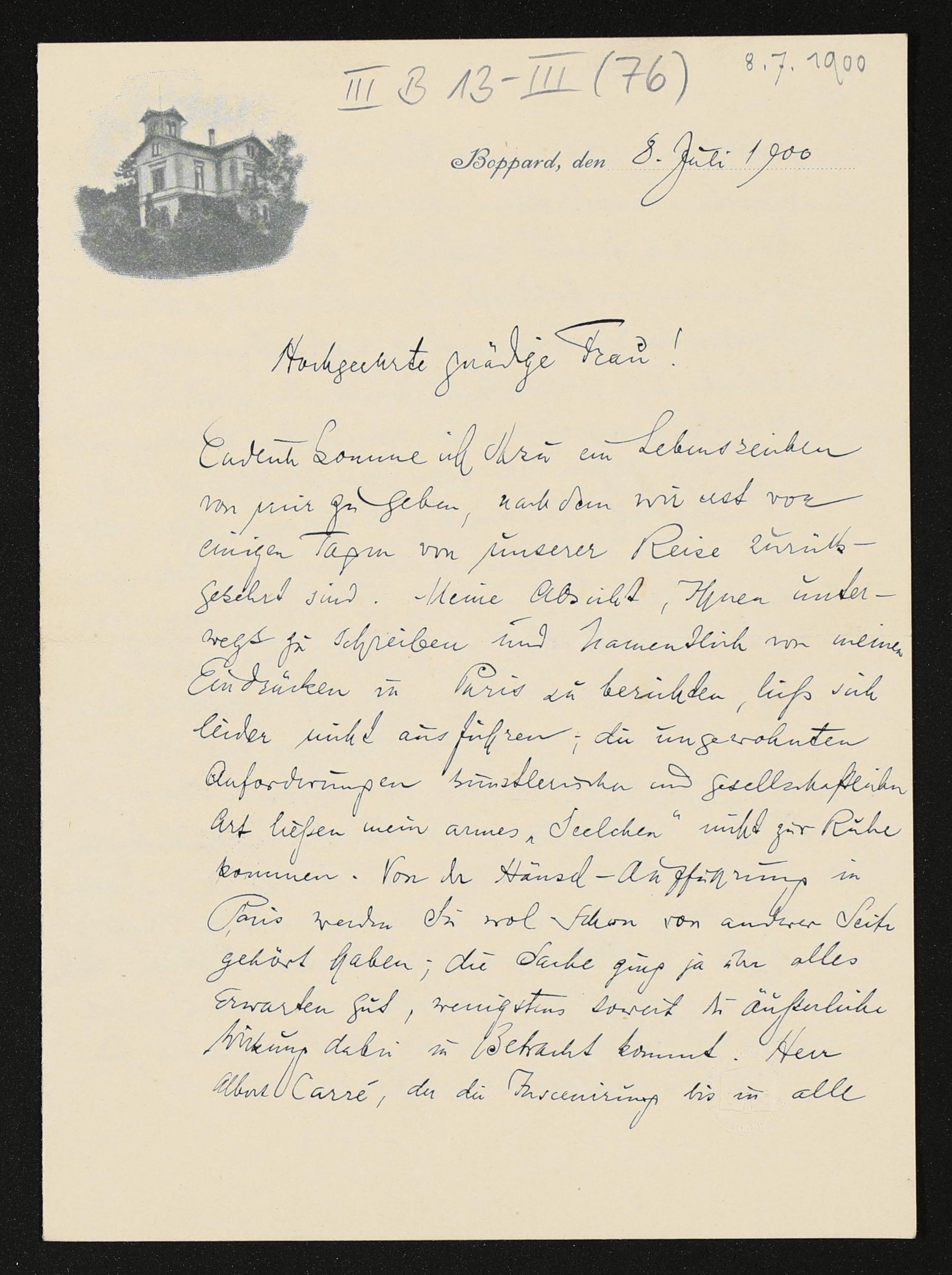eigenhändiger Brief von Engelbert Humperdinck an Cosima Wagner