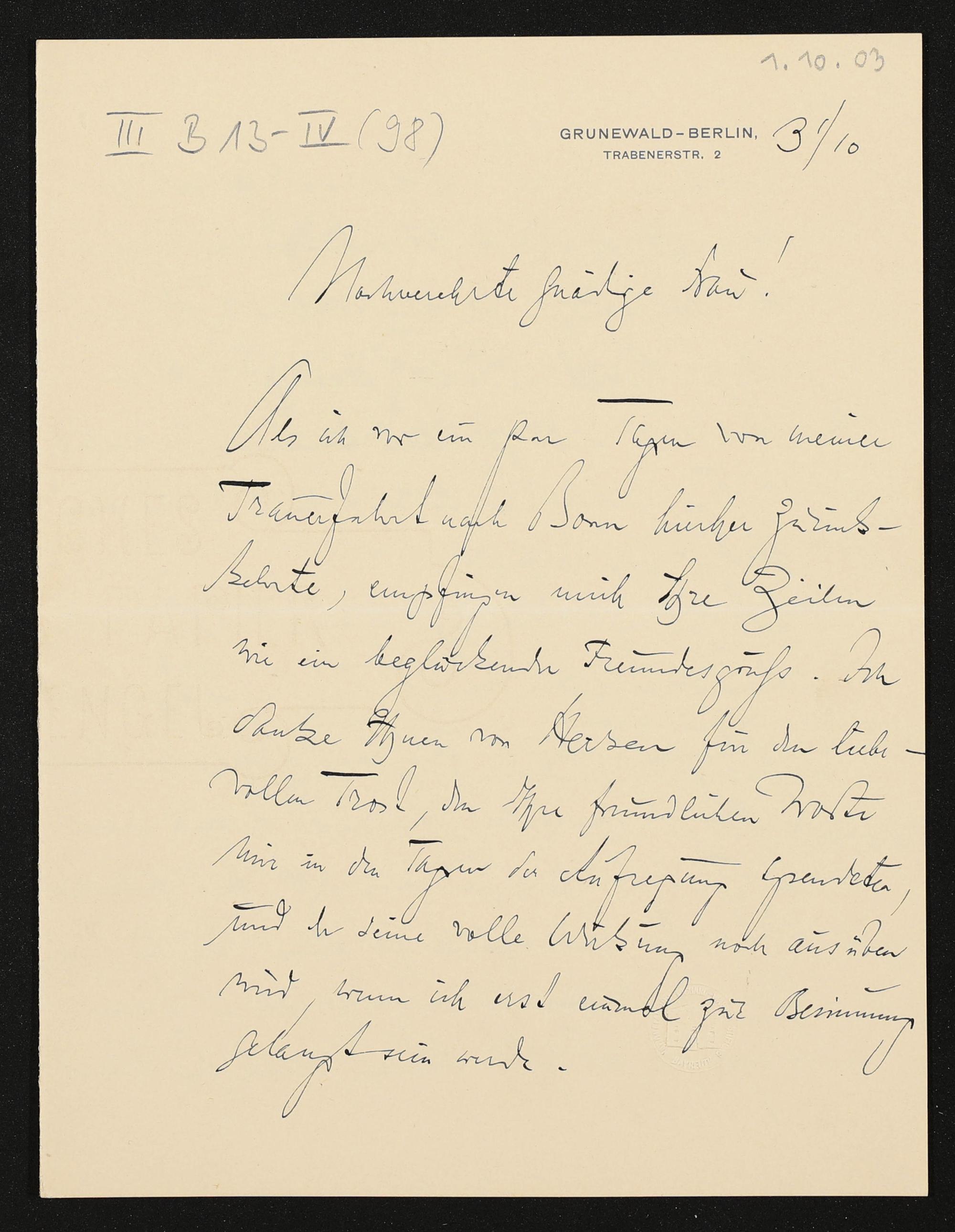 eigenhändiger Brief von Engelbert Humperdinck an Cosima Wagner