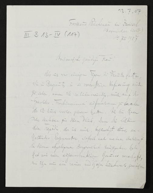 eigenhändiger Brief von Engelbert Humperdinck an Cosima Wagner
