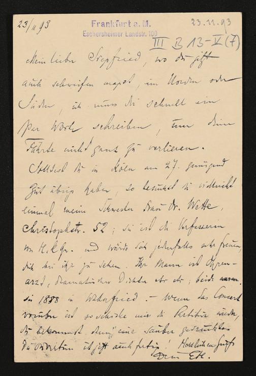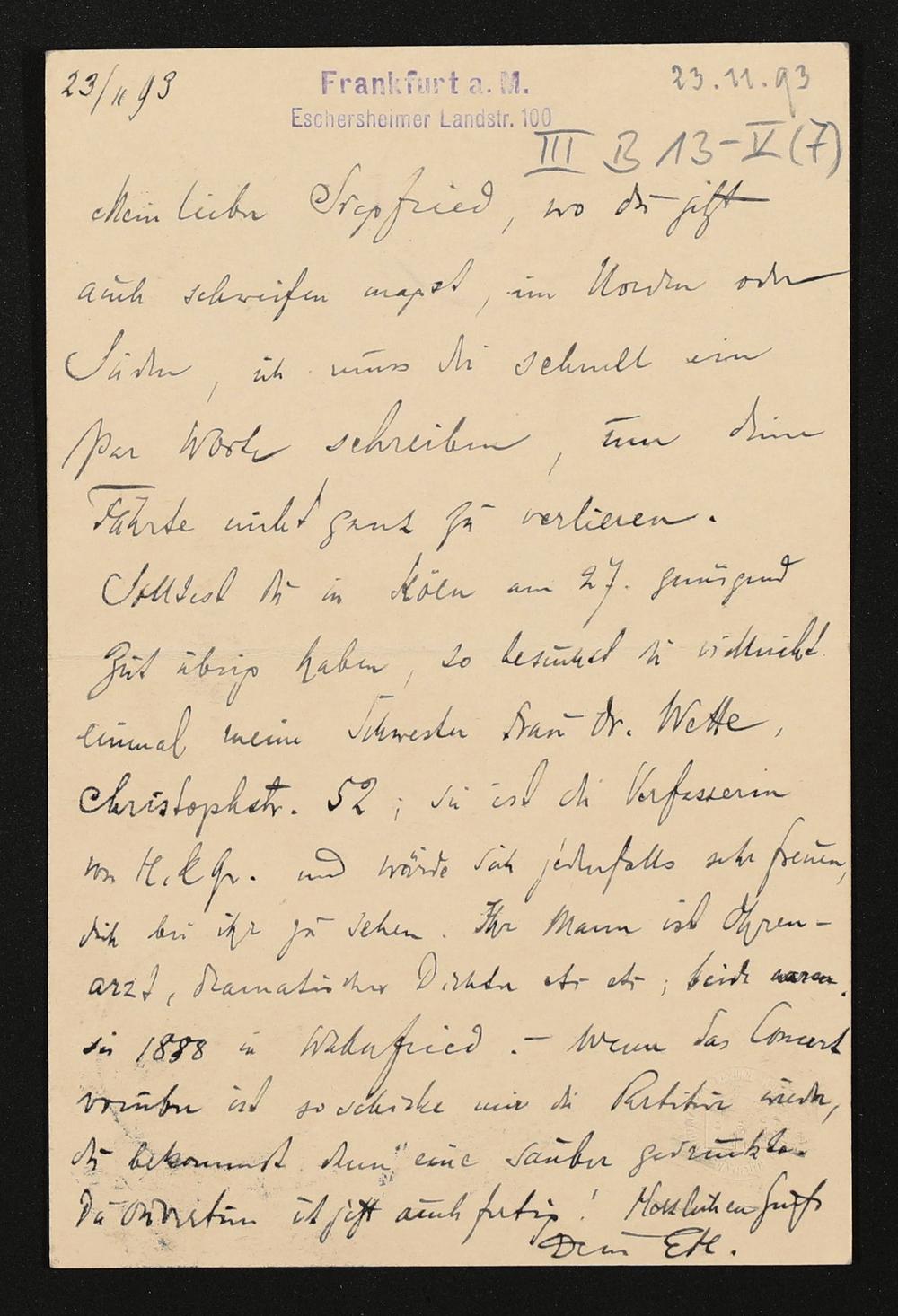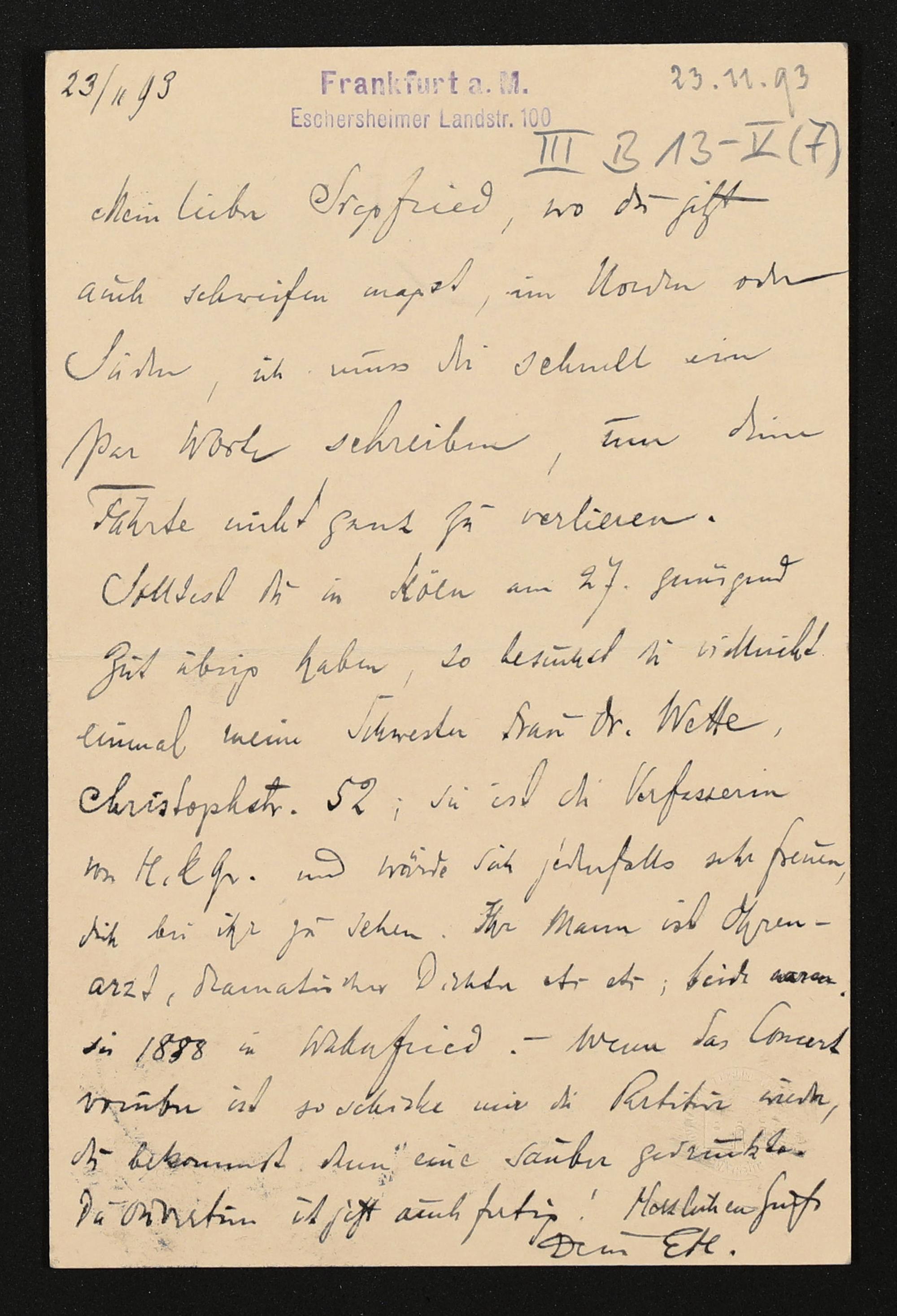 eigenhändige Postkarte von Engelbert Humperdinck an Siegfried Wagner