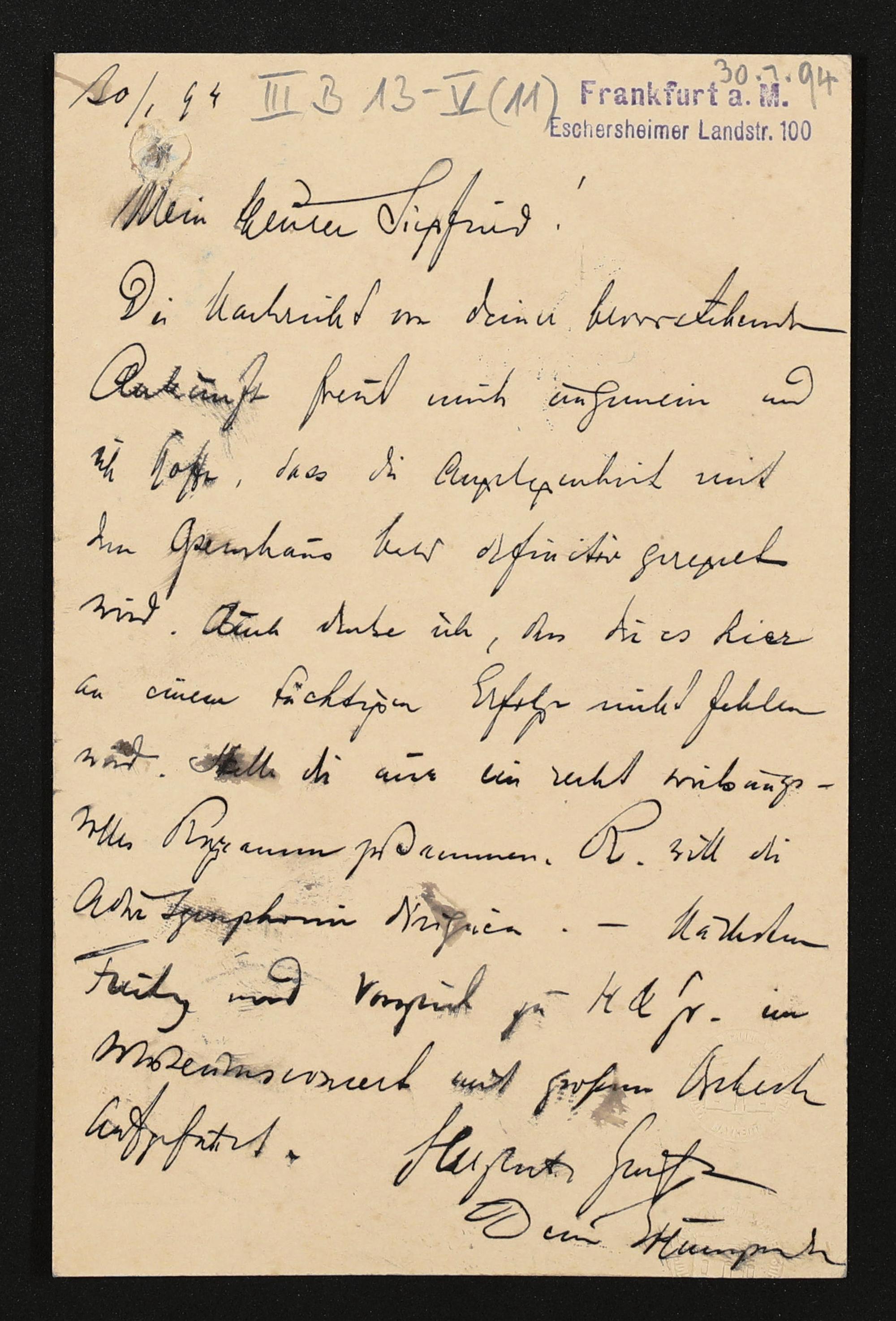eigenhändige Postkarte von Engelbert Humperdinck an Siegfried Wagner