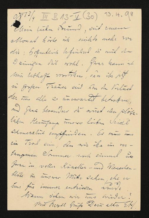 eigenhändige Postkarte von Engelbert Humperdinck an Siegfried Wagner