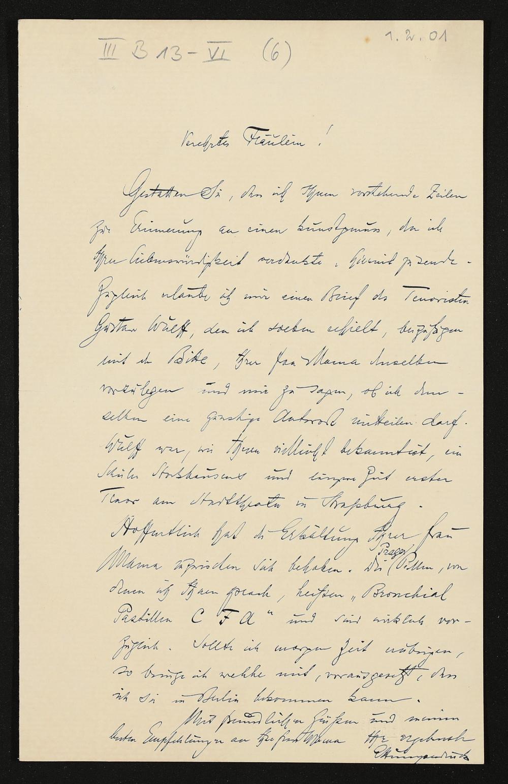 eigenhändiger Brief von Engelbert Humperdinck an Eva Wagner