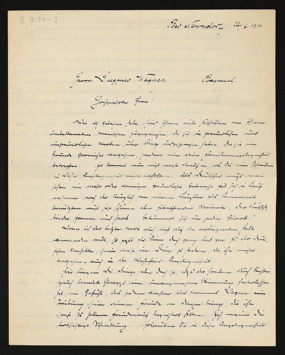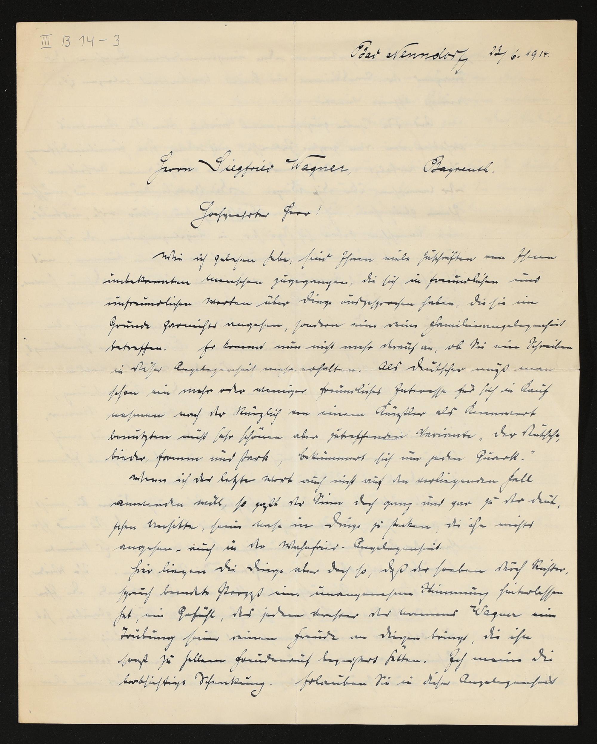 eigenhändiger Brief von Carl Jacobsen an Siegfried Wagner