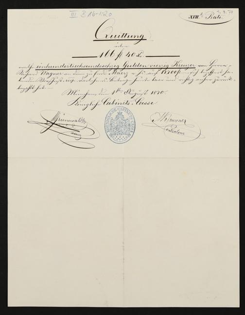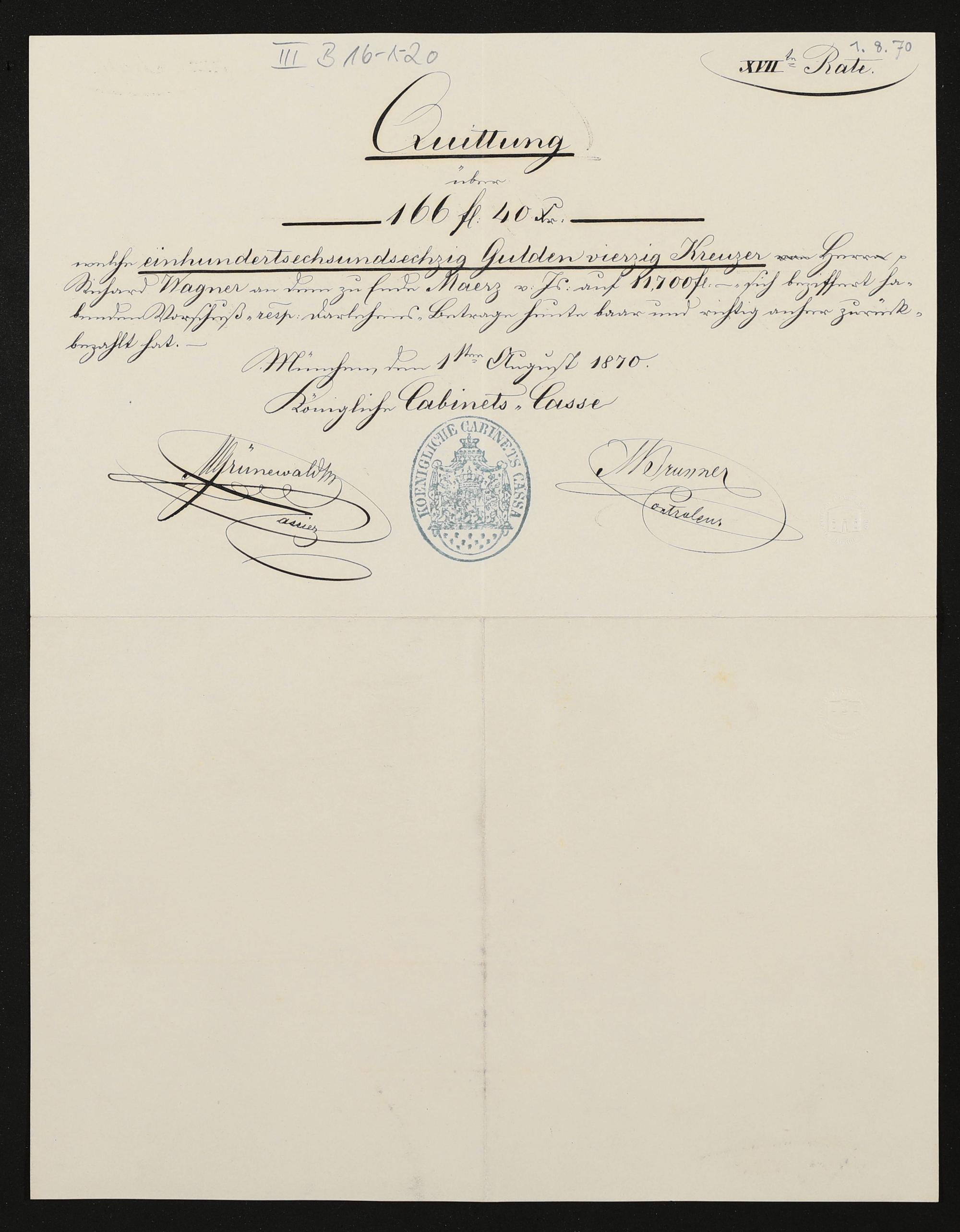eigenhändige Quittung von der Königlich Bayerischen Kabinettskasse an Richard Wagner