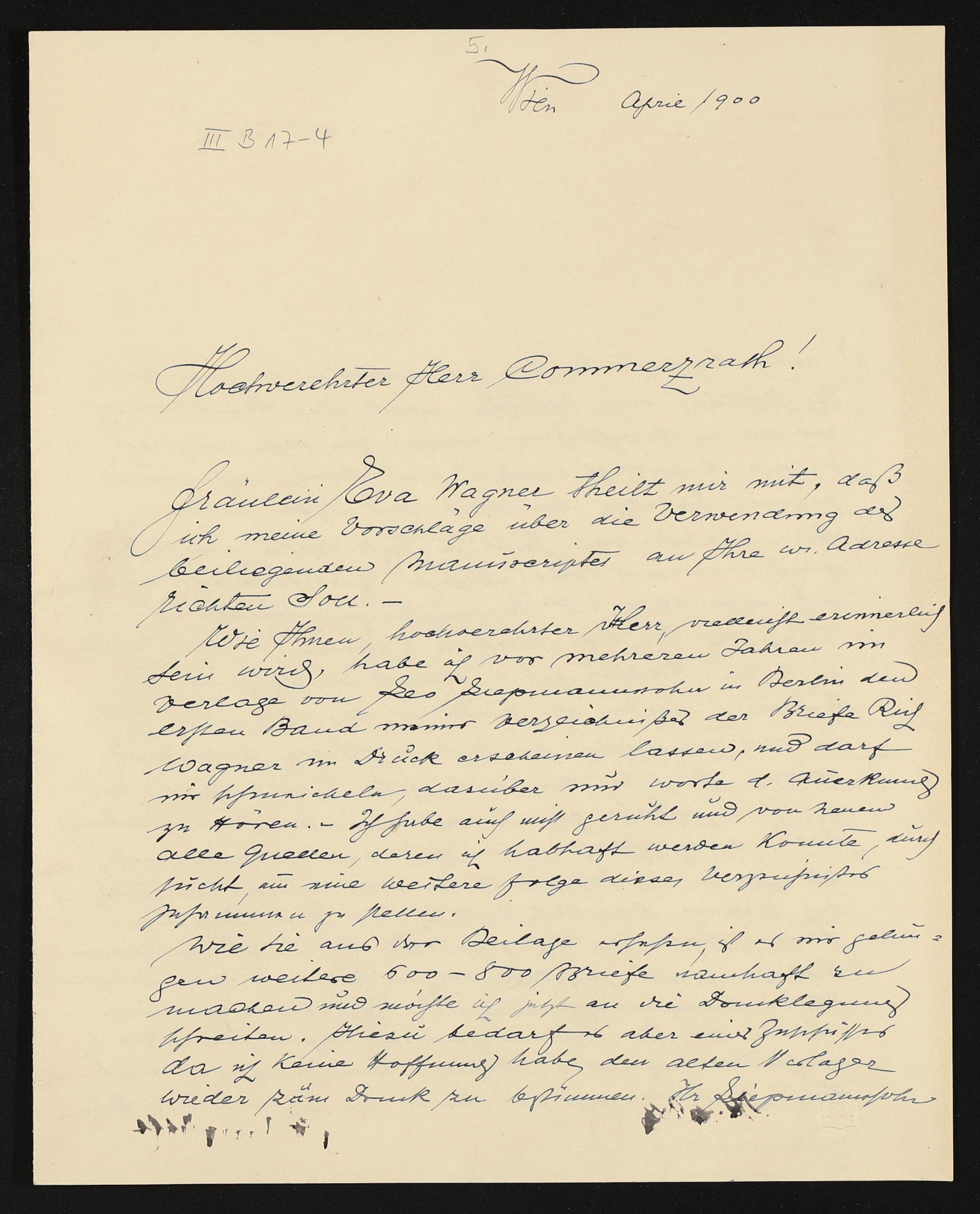 eigenhändiger Brief von Emerich Kastner an Adolf von Gross