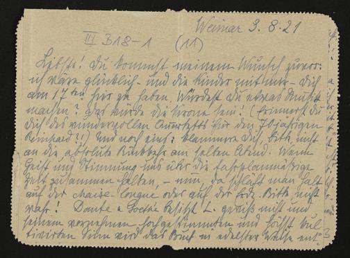 eigenhändige Briefkarte von Anna Kekulé von Stradonitz an Daniela Thode
