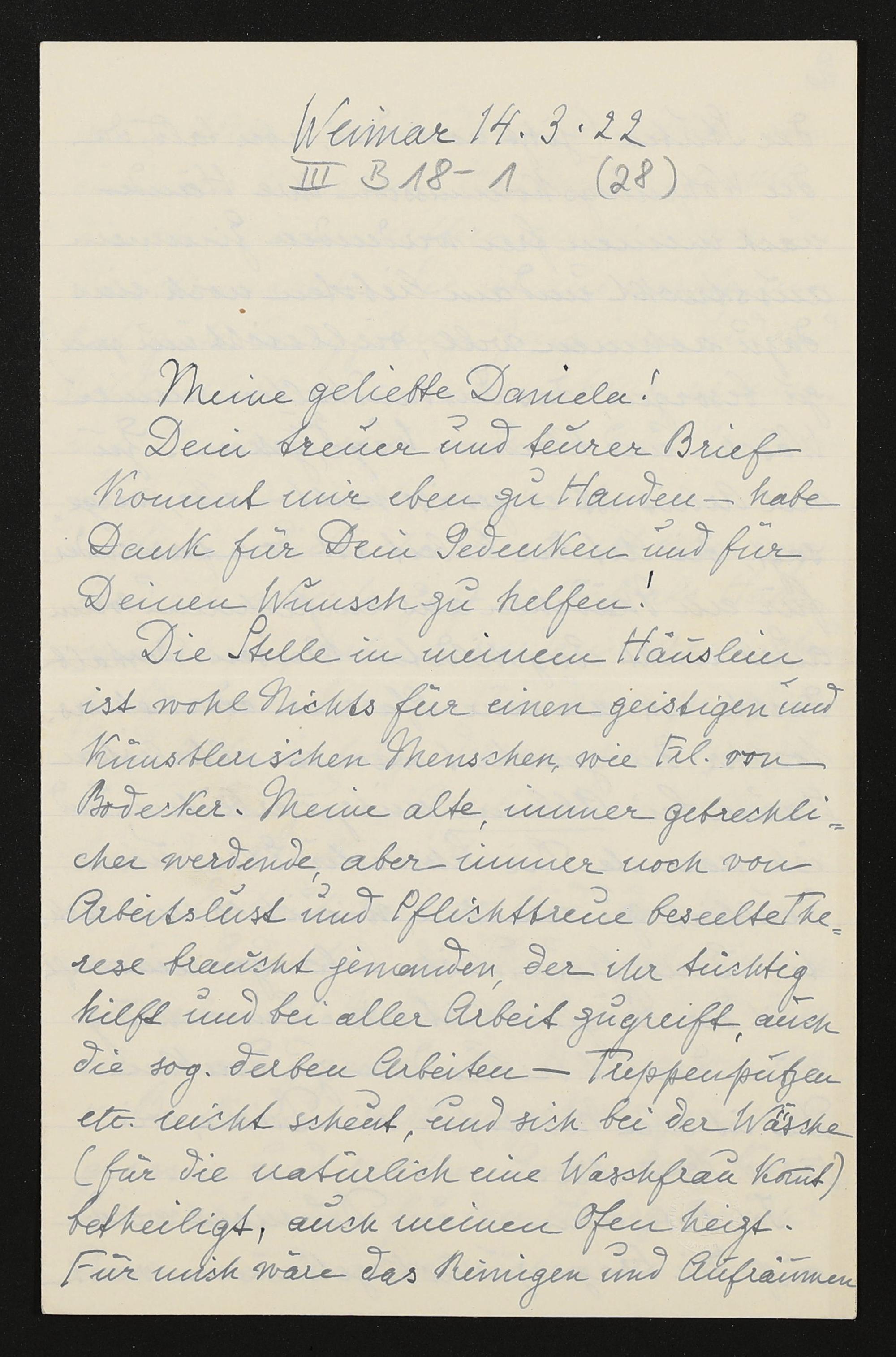 eigenhändiger Brief von Anna Kekulé von Stradonitz an Daniela Thode