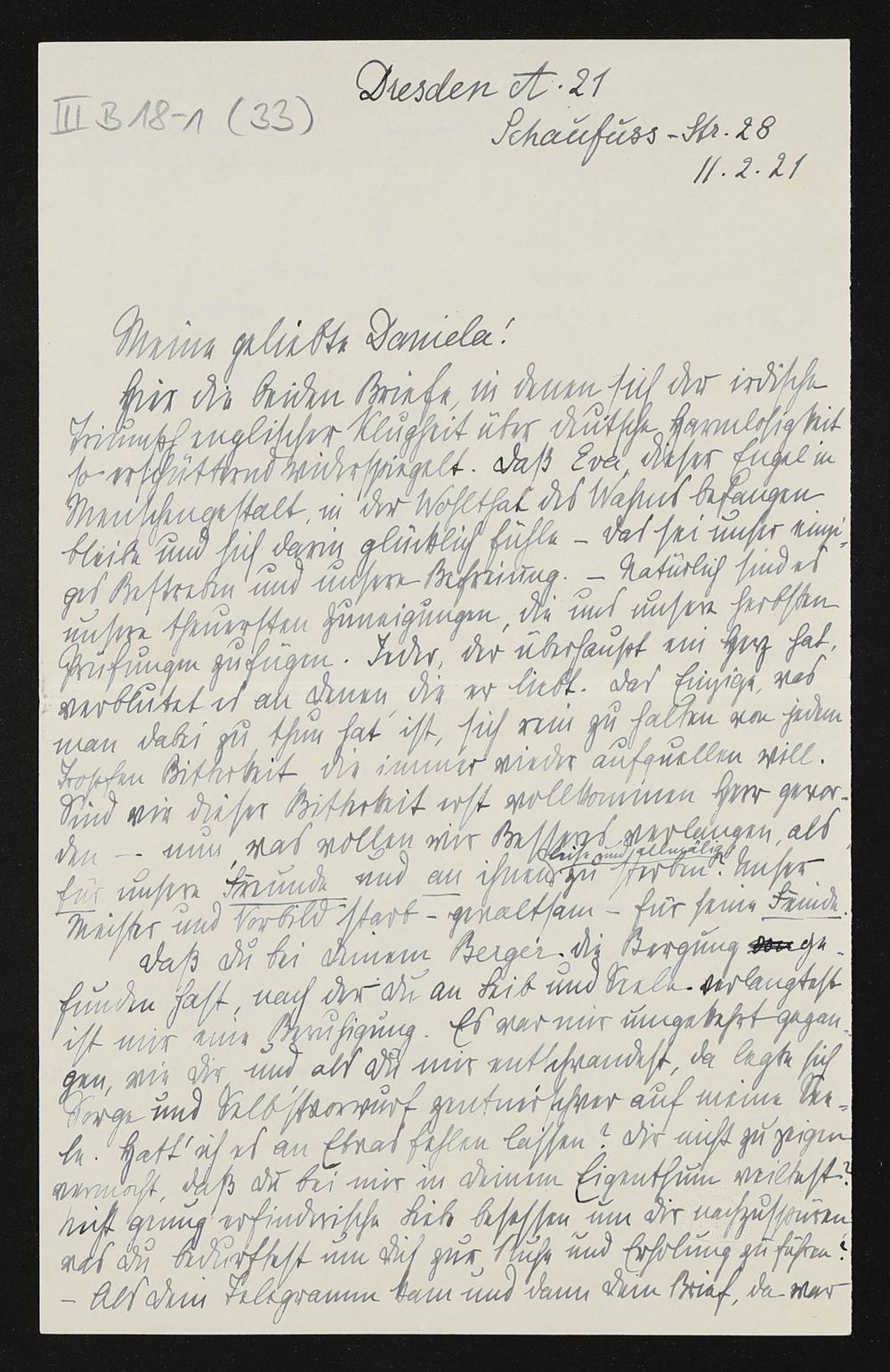 eigenhändiger Brief von Anna Kekulé von Stradonitz an Daniela Thode
