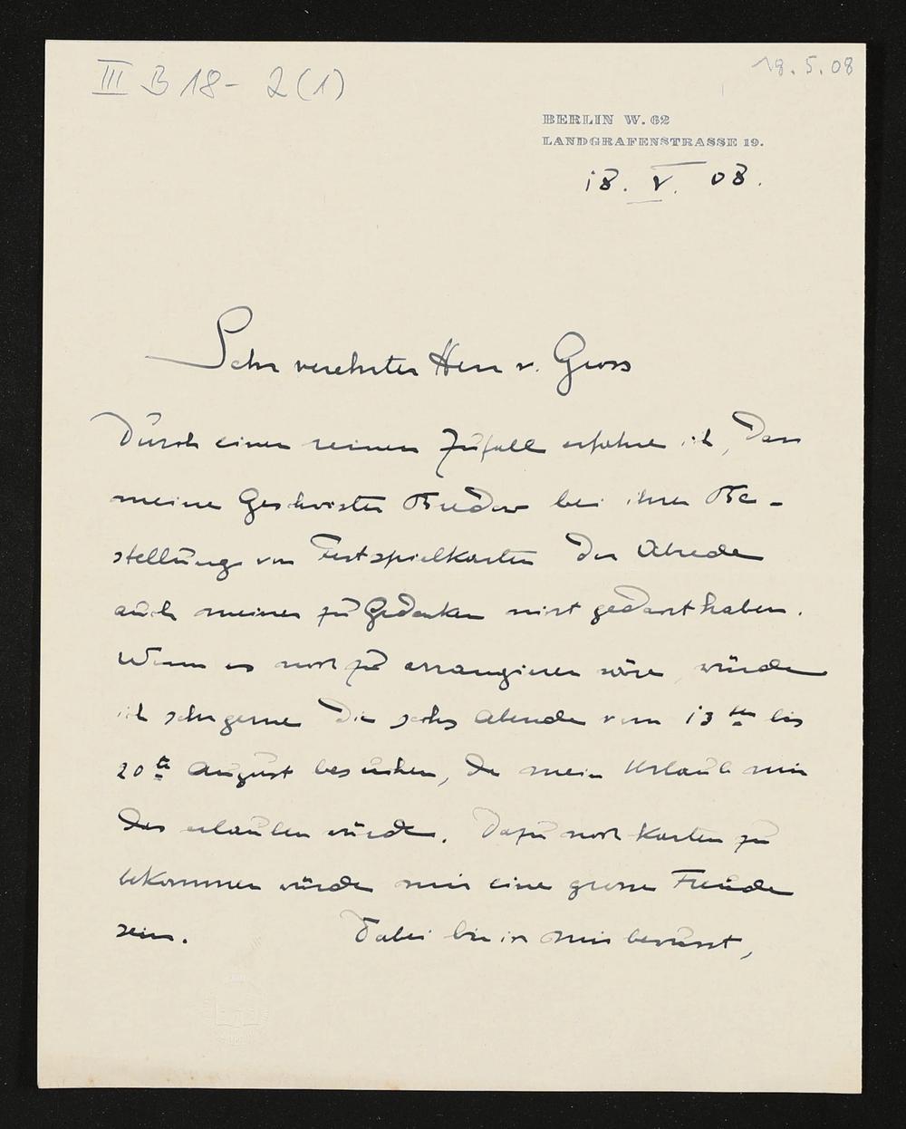 eigenhändiger Brief von Hugo Kekulé von Stradonitz an Adolf von Gross