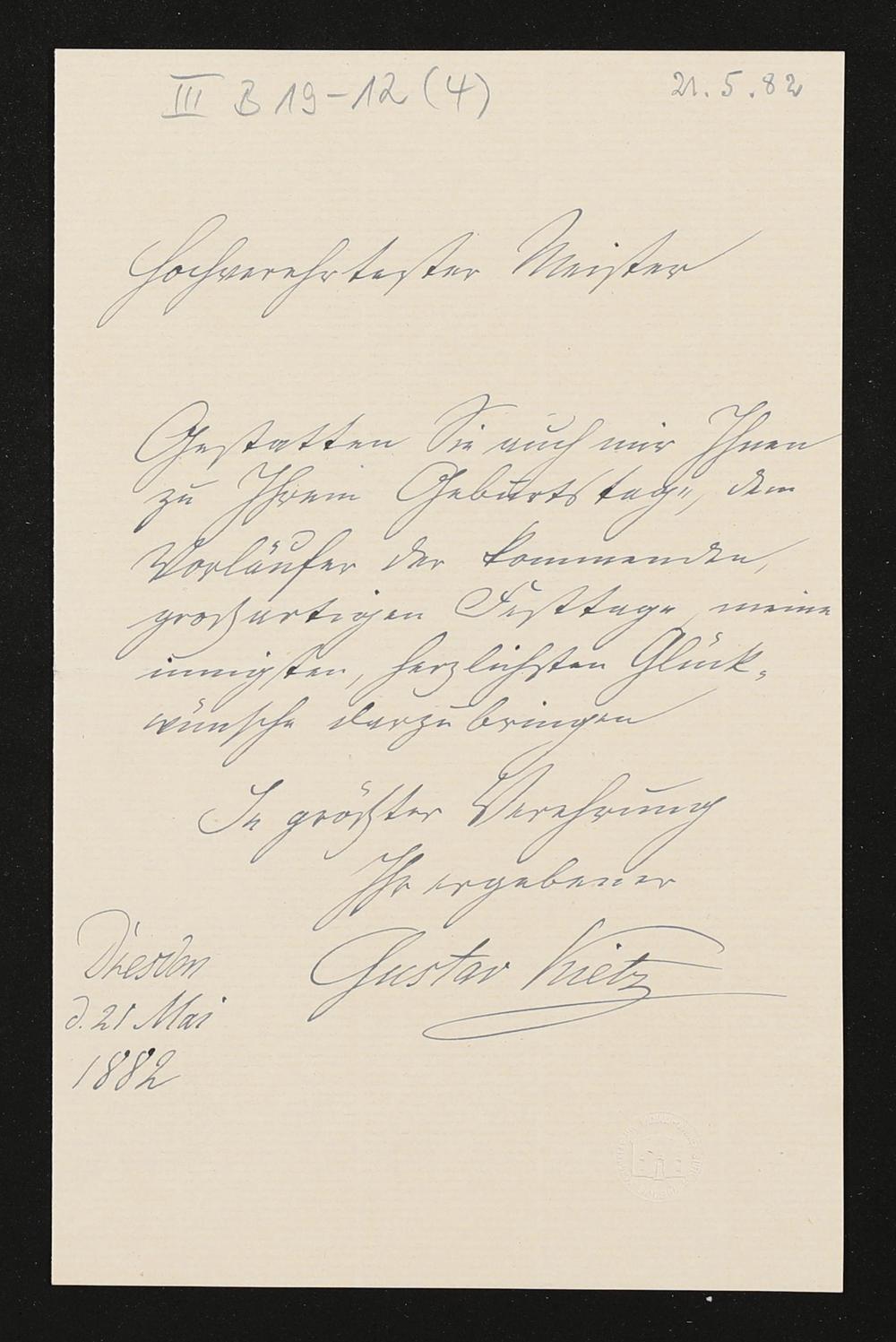 eigenhändiger Brief von Gustav Adolph Kietz an Richard Wagner