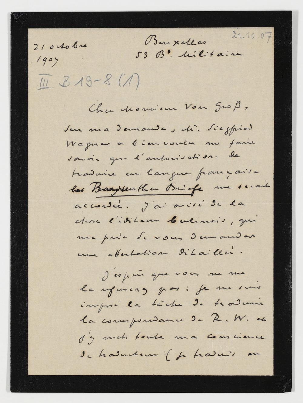 eigenhändiger Brief von Georges Khnopff an Adolf von Gross
