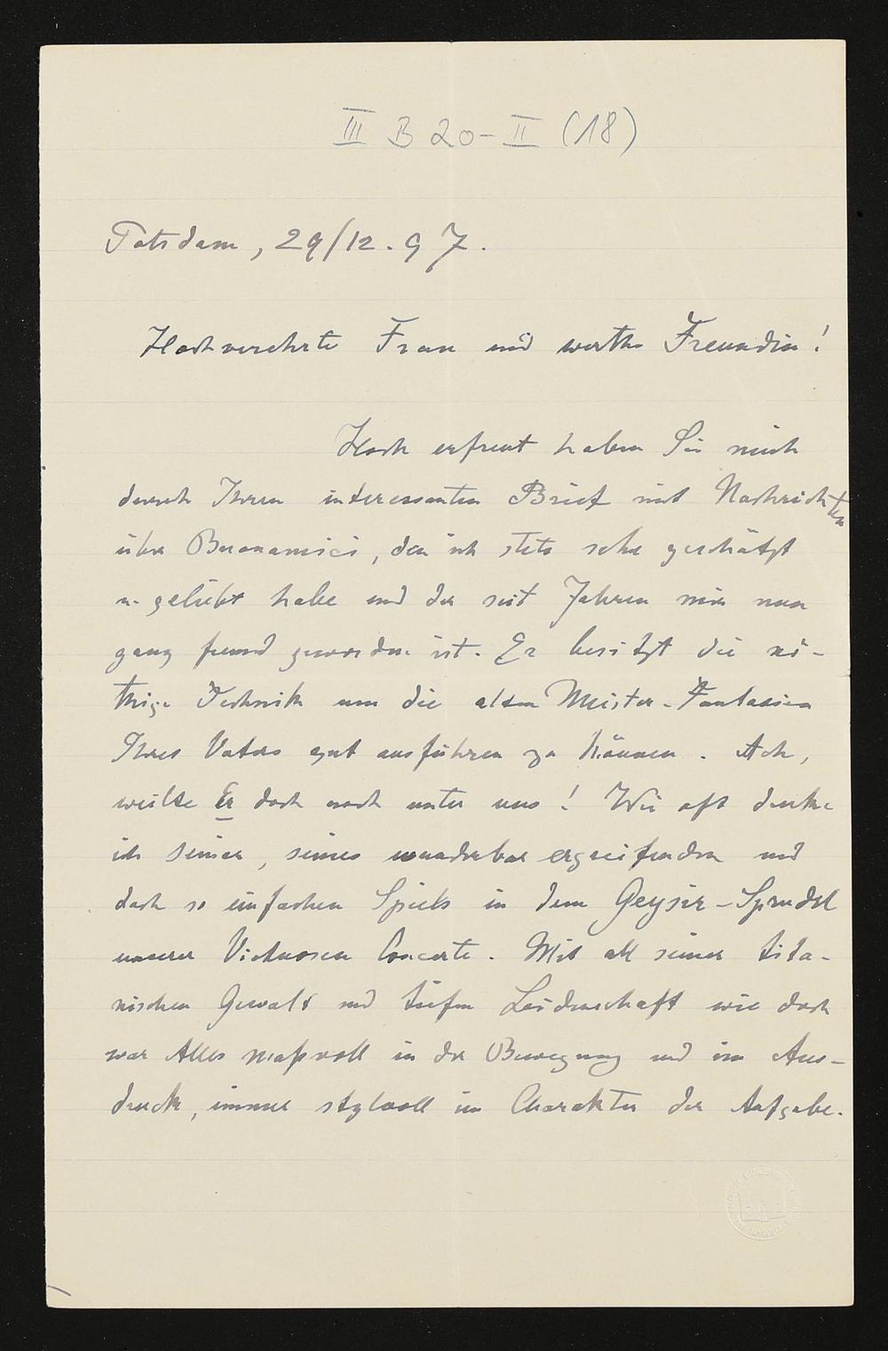 eigenhändiger Brief von Karl Klindworth an Cosima Wagner