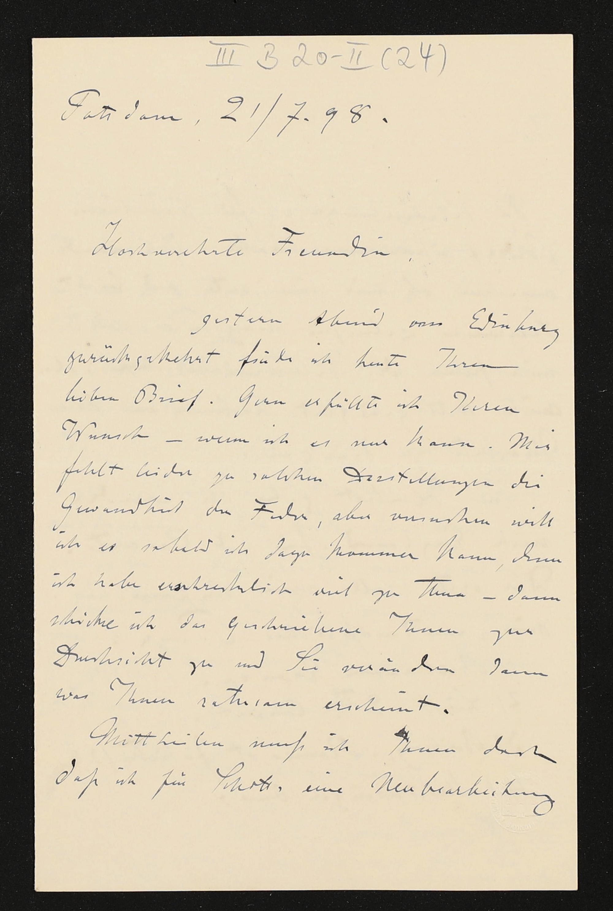 eigenhändiger Brief von Karl Klindworth an Cosima Wagner