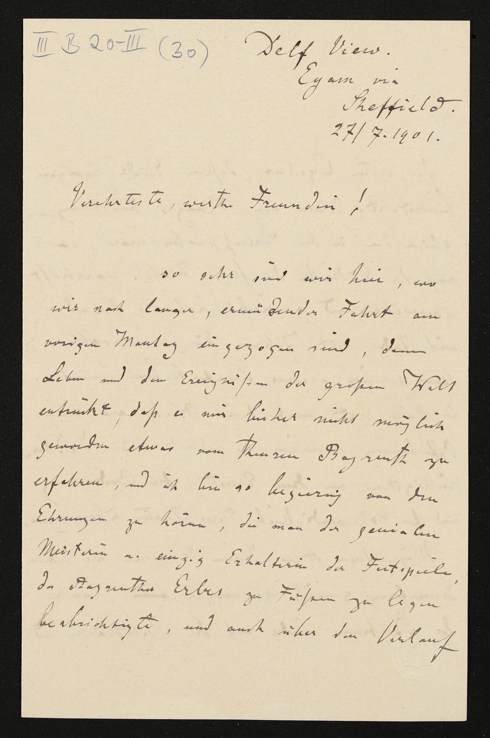 eigenhändiger Brief von Karl Klindworth an Cosima Wagner