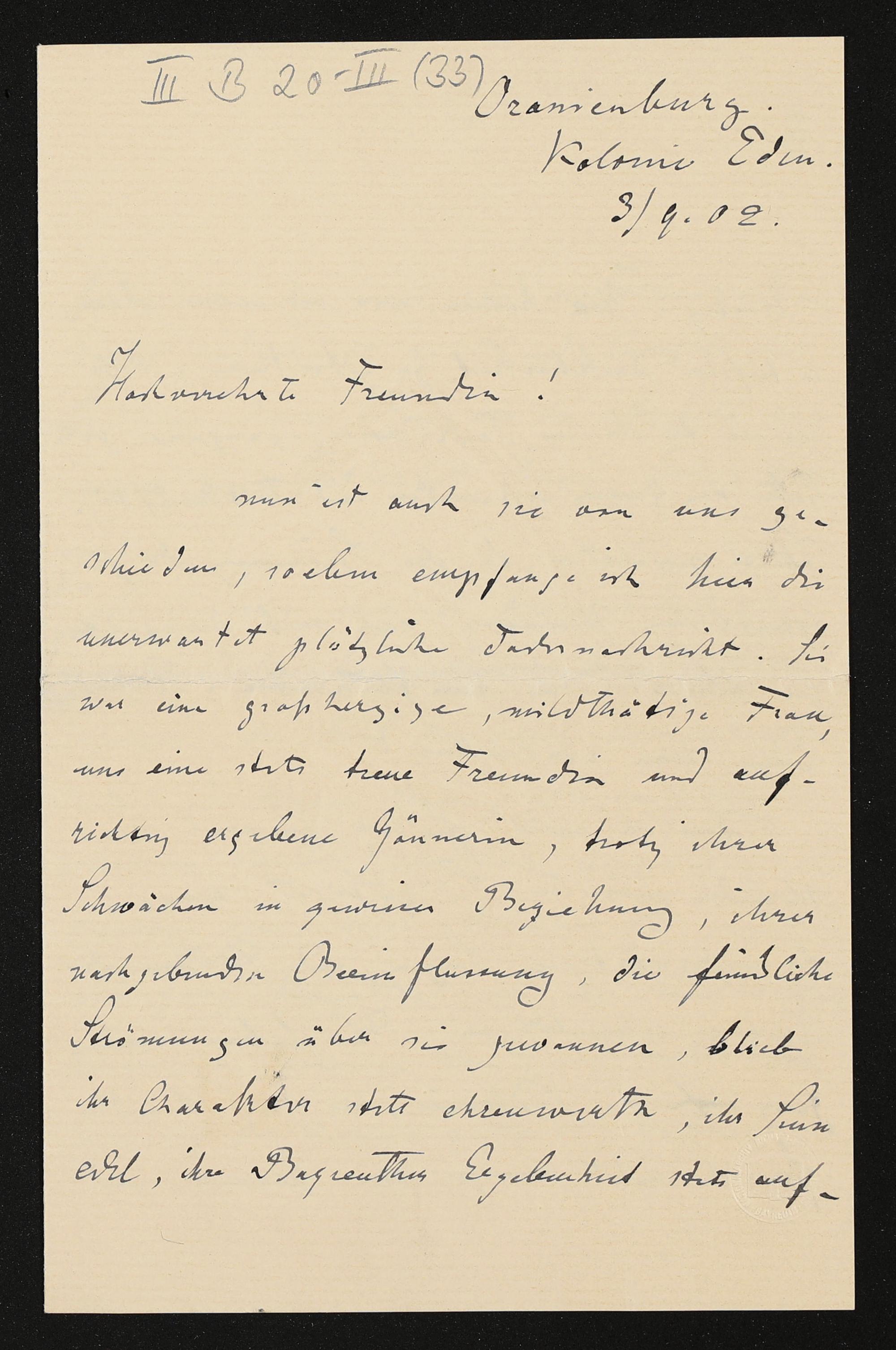 eigenhändiger Brief von Karl Klindworth an Cosima Wagner
