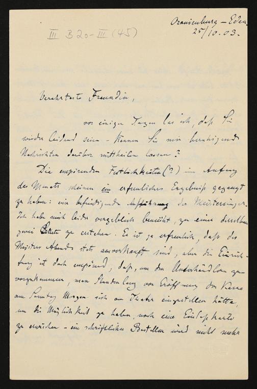 eigenhändiger Brief von Karl Klindworth an Cosima Wagner