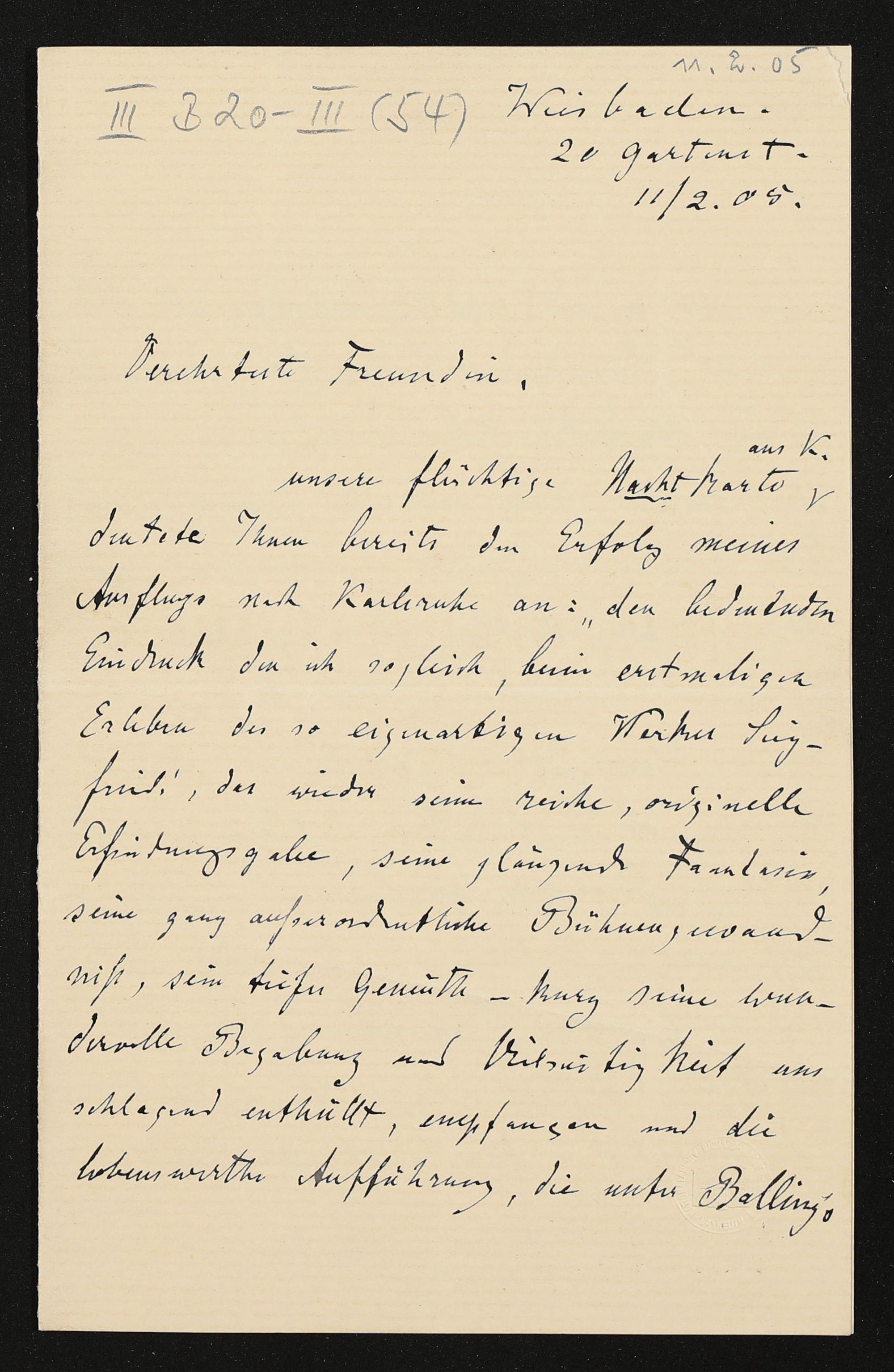 eigenhändiger Brief von Karl Klindworth an Cosima Wagner