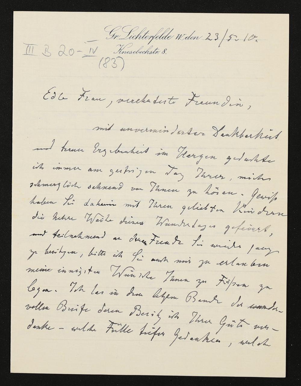 eigenhändiger Brief von Karl Klindworth an Cosima Wagner